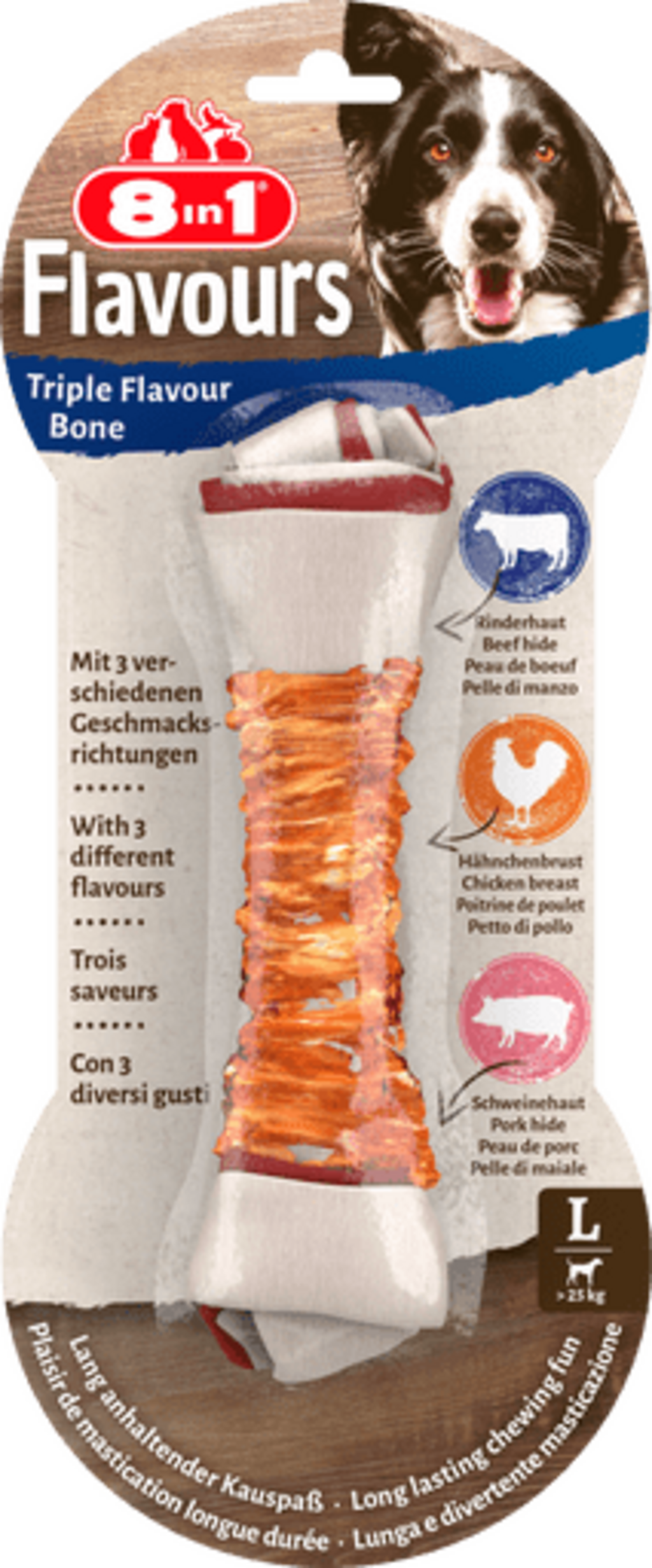 A 8in1 Triple Flavour tökéletes választás, ha finom csemegét keres szőrös barátjának. A sertés- és marhabőr kombinációja finom csirkemellel bevonva igazi ízrobbanást biztosít!