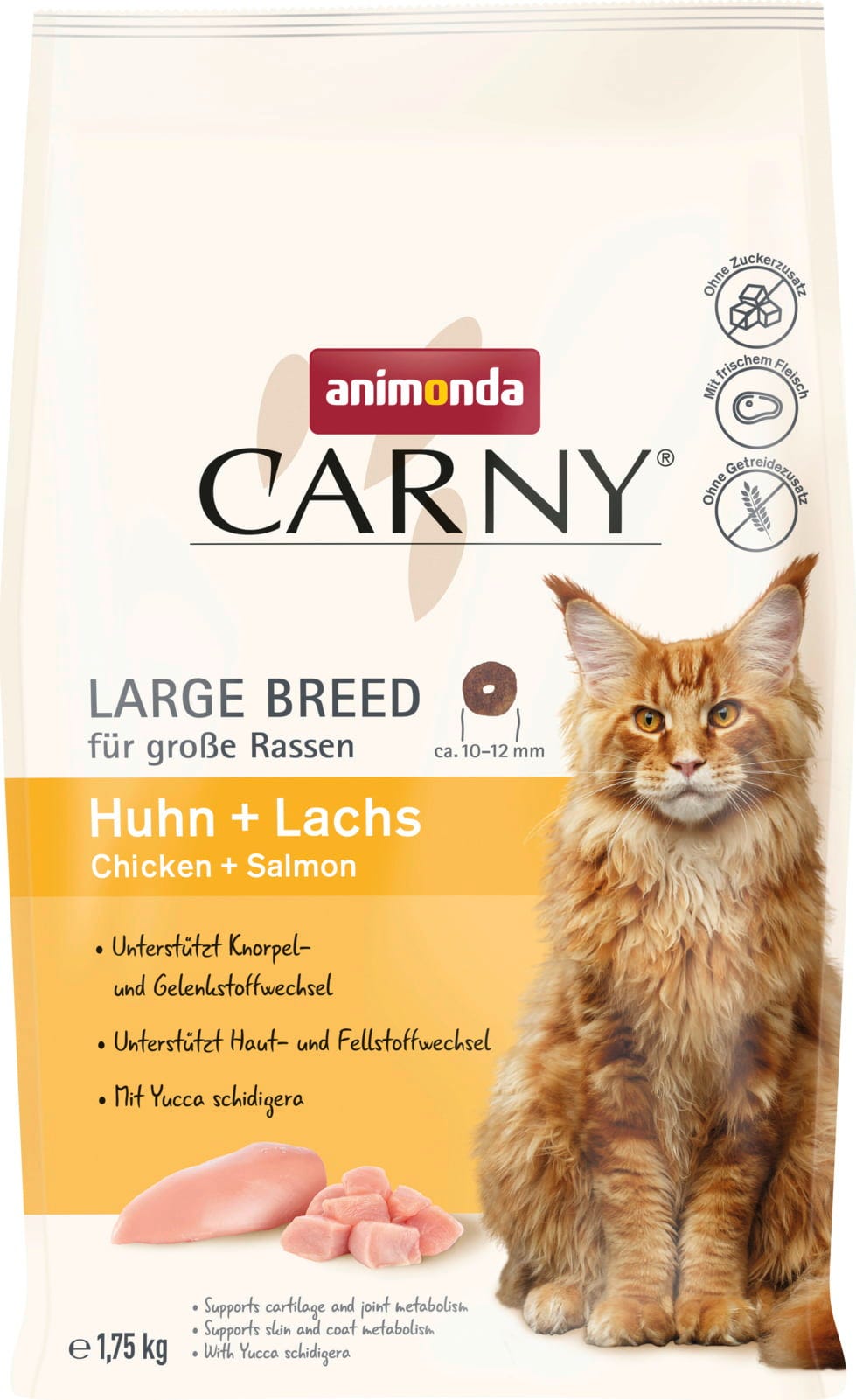 Ez a prémium száraztáp nemcsak kiváló ízű, de ideális nagytestű macskafajták, például a maine coon számára is! A bőséges, 35%-os csirkehústartalom mellett yucca schidigerát és nagy mennyiségű értékes lazacolajat is tartalmaz, amely gazdag omega-3 zsírsavakban, és segíthet a bőr és a szőrzet anyagcseréjének támogatásában.