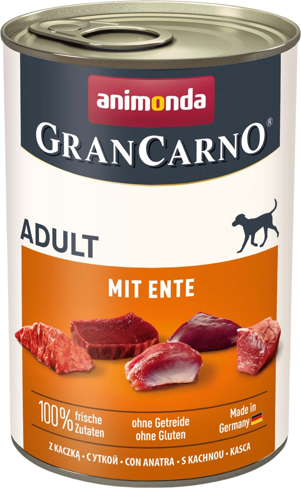 Az ízletes sertéshús és a finom kacsa lédús darabjai tökéletesen kiegyensúlyozott ízt biztosítanak ebben a nedvestápban! De a GranCarno Adult nem csak ízletes: a táp csak friss és természetes összetevőket tartalmaz, amelyekhez mesterséges színezékek vagy tartósítószerek nem kerültek hozzáadásra. A kiegyensúlyozott nedvestáp nem tartalmaz szóját, gabonát és cukrot!