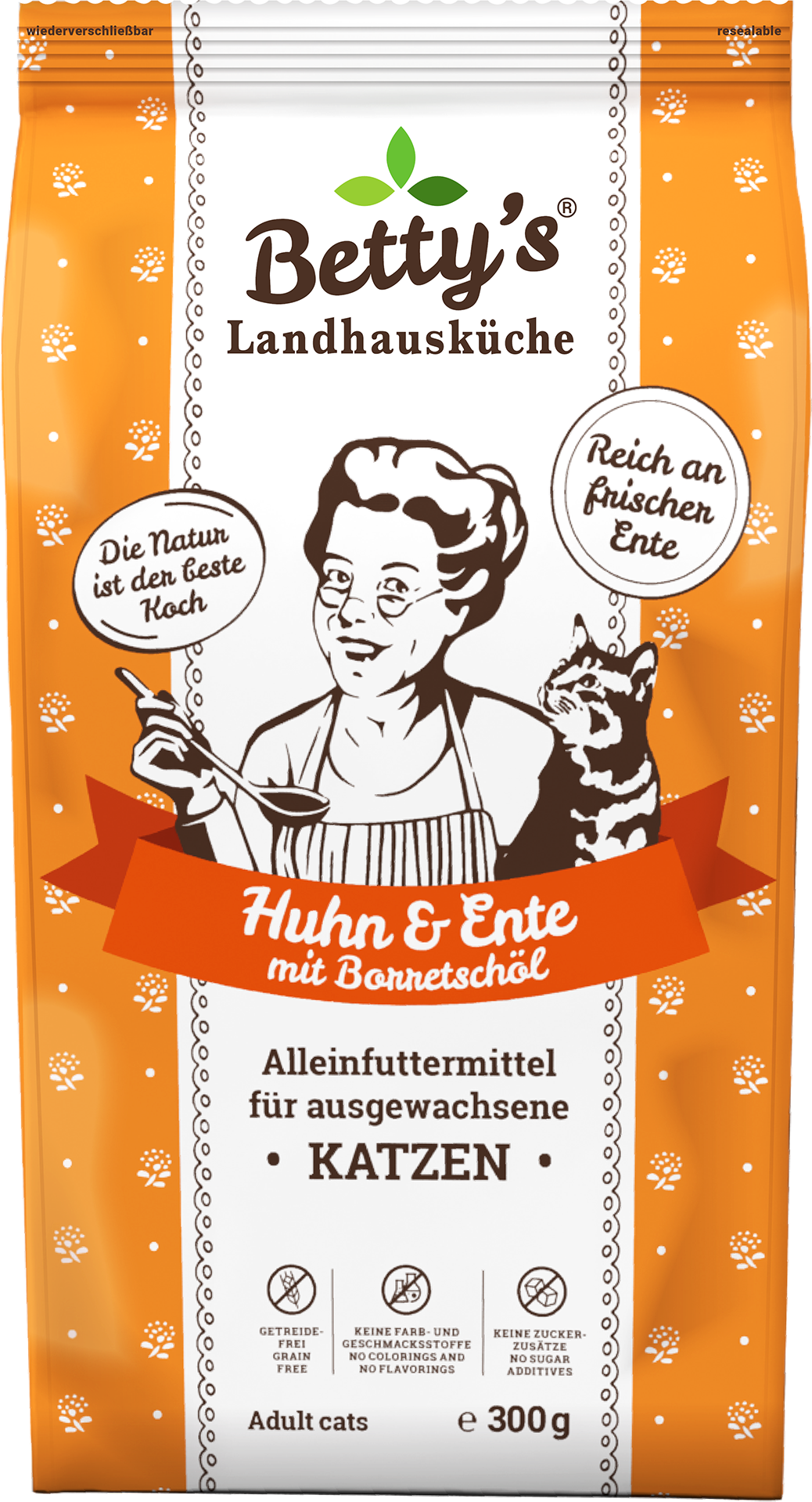 Betty's Landhausküche Felnőtt száraz macskatáp - Csirke és kacsa, 300 g