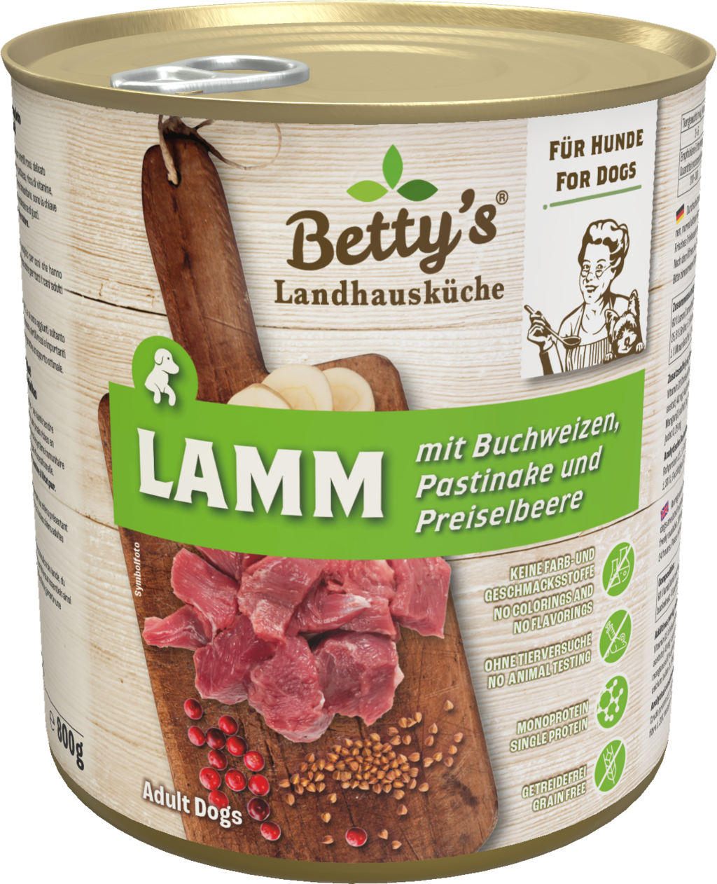 Betty's Landhausküche Kutyatáp - Bárány hajdinával, 800 g
