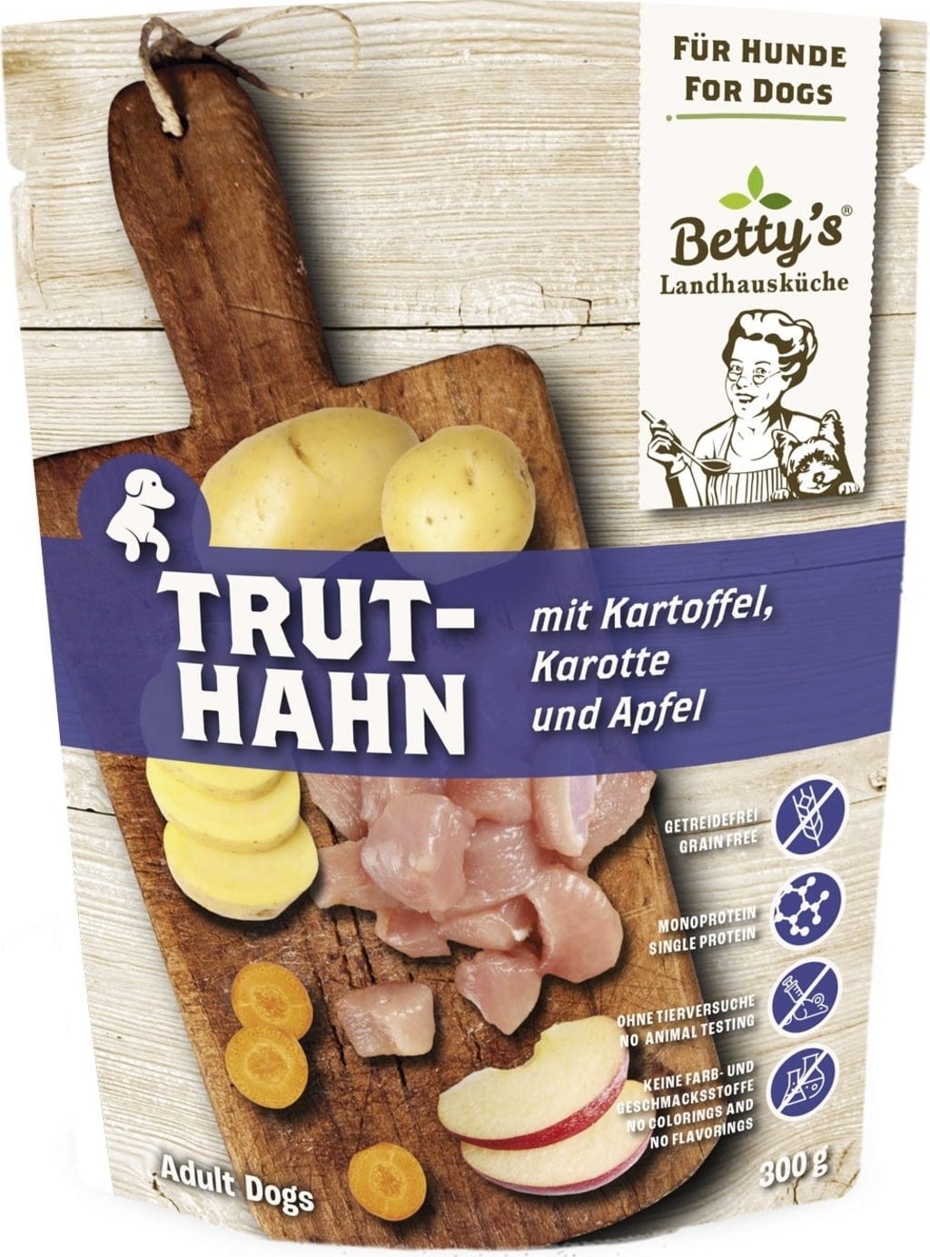 Vásárlói vélemény magyar nyelven: Betty's Landhausküche Tasakos kutyatáp - Pulyka + burgonya, sárgarépa és alma