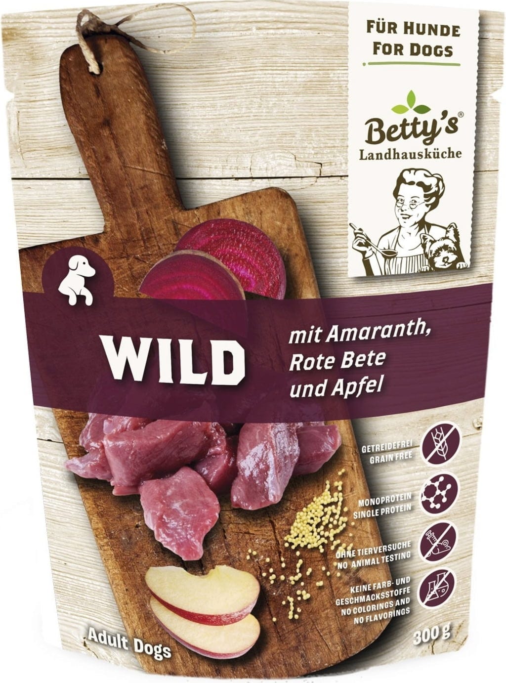 Betty's Landhausküche Tasakos kutyatáp - Vad + amaránt, cékla és alma, 300 g