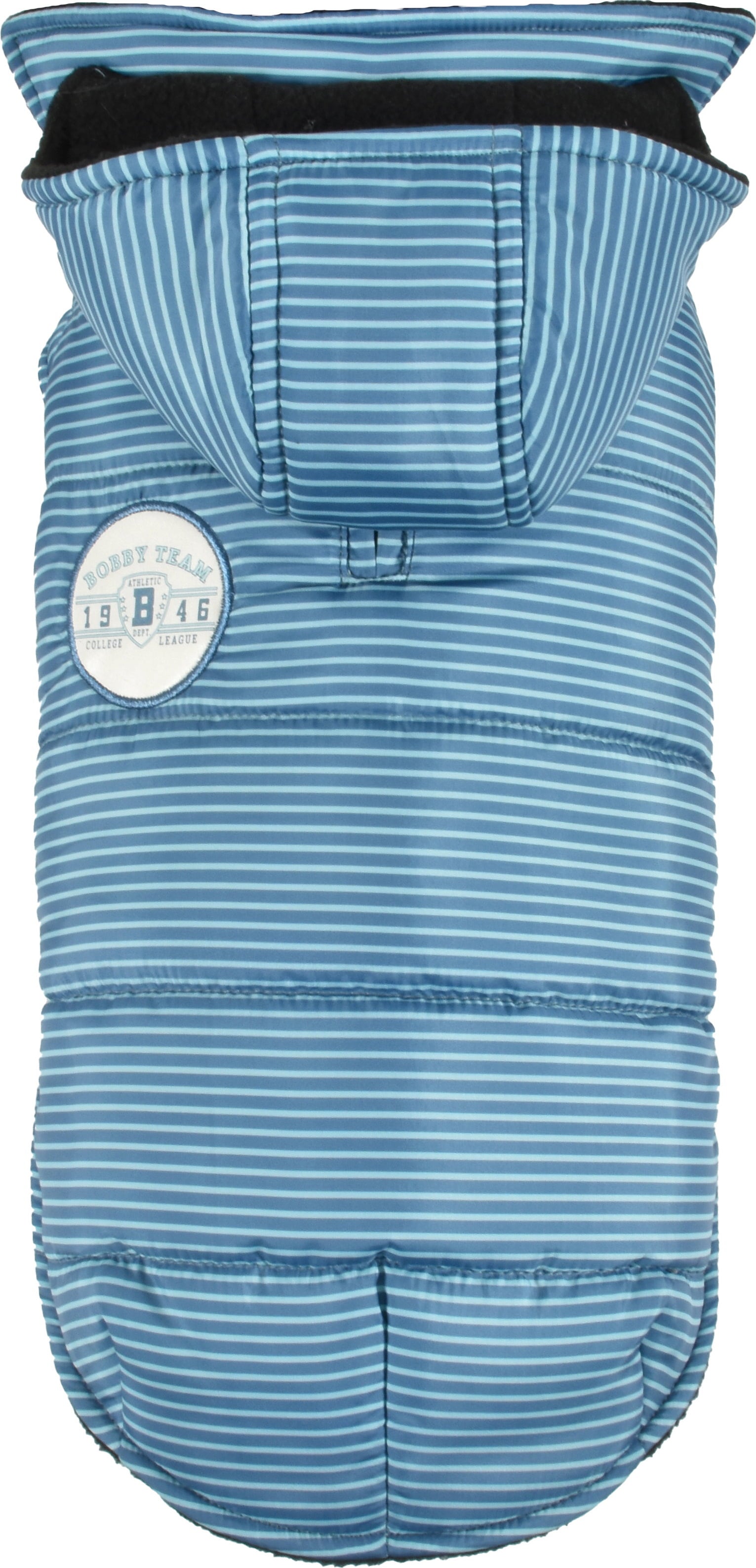 Ezzel a sikkes, friss kék színű, steppelt kabáttal négylábú barátja dacolhat a széllel és az időjárással, mivel vastag párnázásának és praktikus kapucnijának köszönhetően kellemesen melegen tartja. Ezáltal a közös séták igazi élménnyé válnak, még a hideg évszakban is.