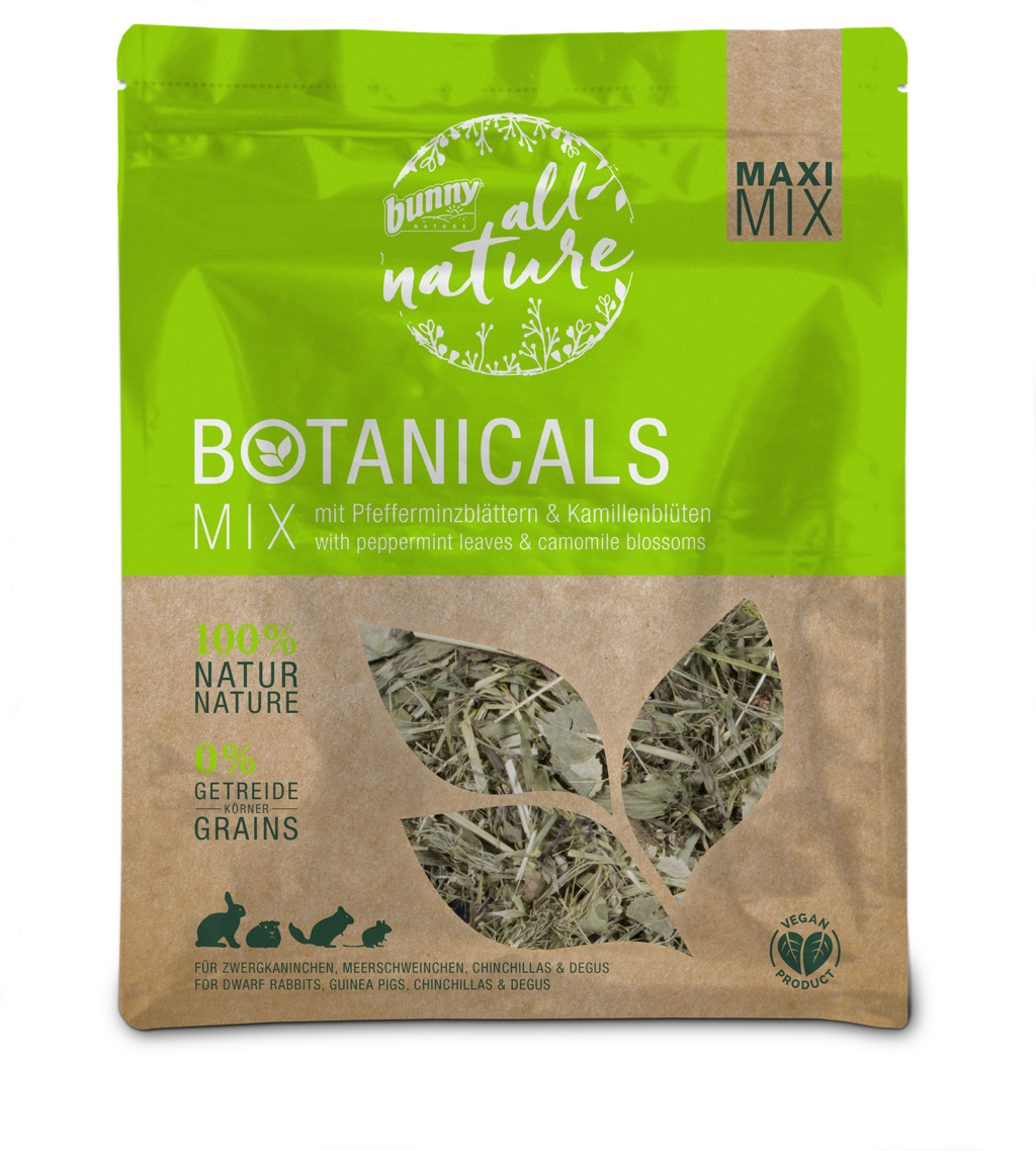 Válasszon egy bunny Botanicals MAXI MIX-et fő összetevőként és egy bunny Botanicals MID MIX-et, majd keverje össze a kettőt a megfelelő arányban. Adja hozzá a bunny all nature VITAMINE-t kiegészítésként, és egy a háziállata egyéni preferenciáihoz igazított, kiváló minőségű, strukturált, teljes értékű takarmányt kap, pelletek és extrudátumok nélkül. Így kiegyensúlyozott, természetes és fajnak megfelelő étrendet biztosíthat kedvencének.
