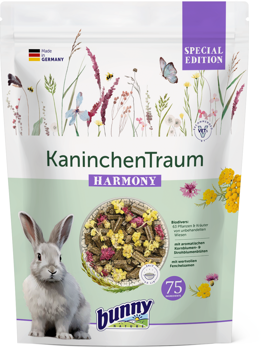 Virágok ereje törpenyulak számára! 63 különböző, kezeletlen rétekről származó növénnyel és gyógynövényrel, valamint számos finom körömvirág- és rózsaszirommal (Blossom), frissítő mentával és finom eperdarabokkal (Strawberry-Mint) vagy búzavirág- és szalmavirágvirággal, valamint édesköménnyel (Harmony) ízletes változatosságot biztosít az etetőtálban, és kiváló minőségű, fajnak megfelelő étrendet tesz lehetővé szőrös barátai számára.