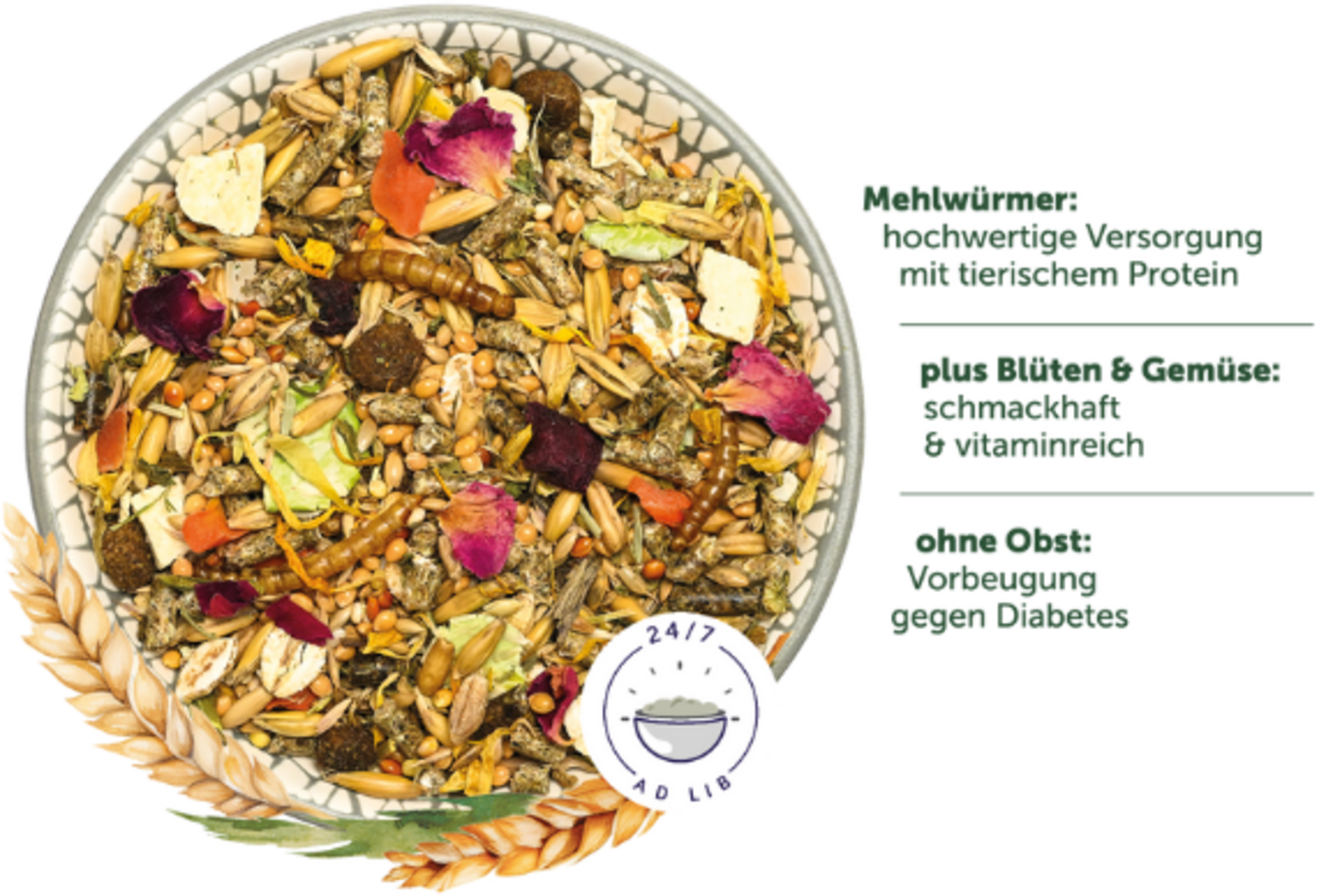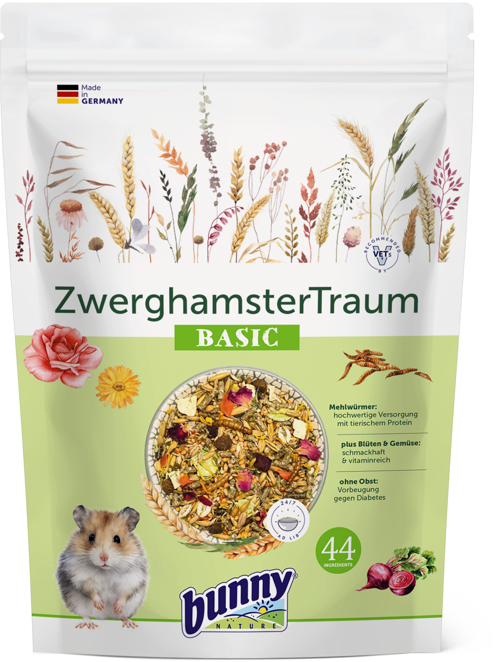 Ez a teljes értékű táp törpehörcsögök számára kifejezetten ezen kis rágcsálók igényeinek kielégítésére lett kifejlesztve, fajnak megfelelő étrendet biztosítva válogatott növényi és állati összetevőkkel. A törpehörcsögök eredeti élőhelyéről származó összetevők biztosítják a különösen magas elfogadást, és megfelelnek természetes étkezési szokásaiknak.