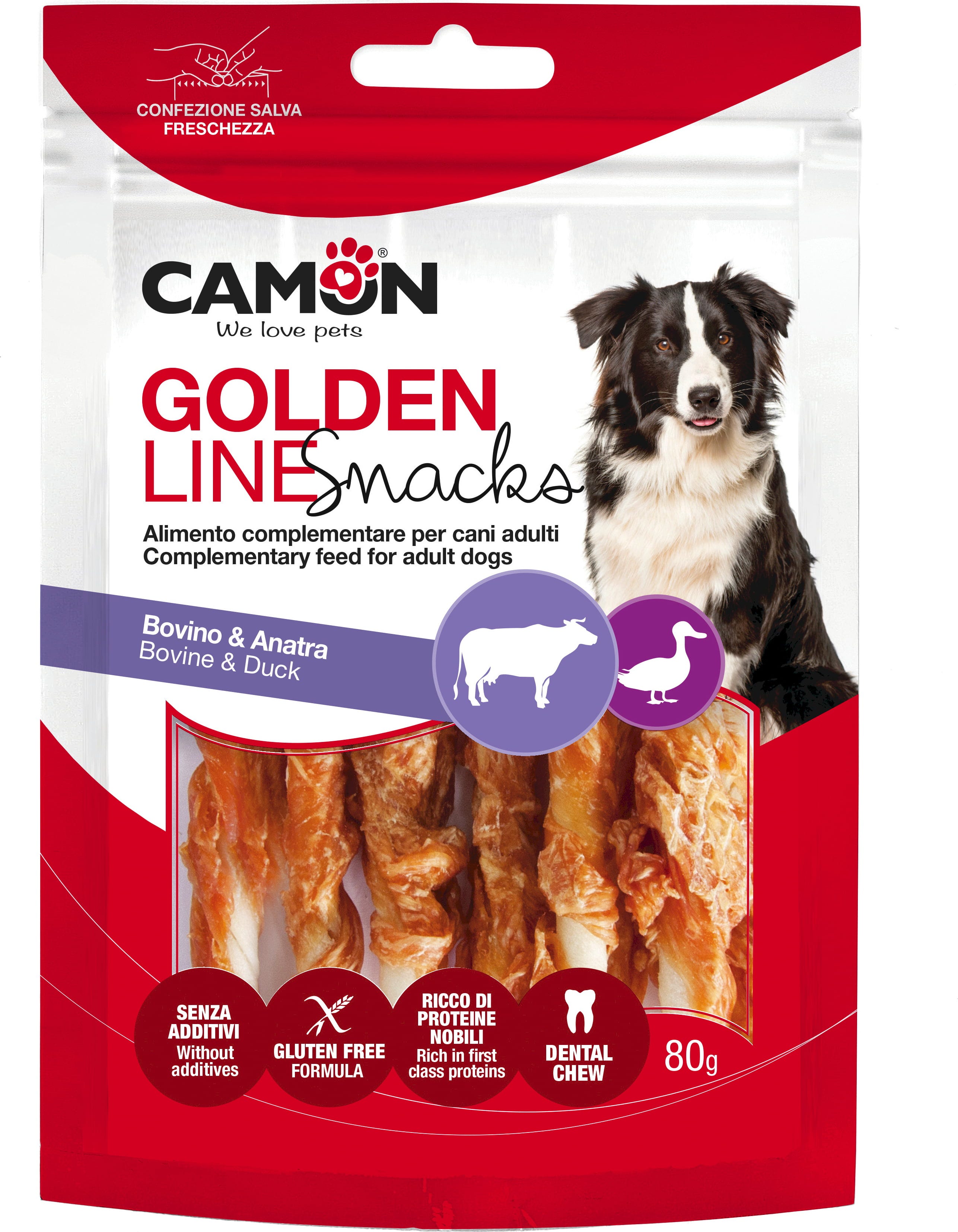 Camon Golden Line Snack Twist rágótekercs, Kacsa és marha (80 g)