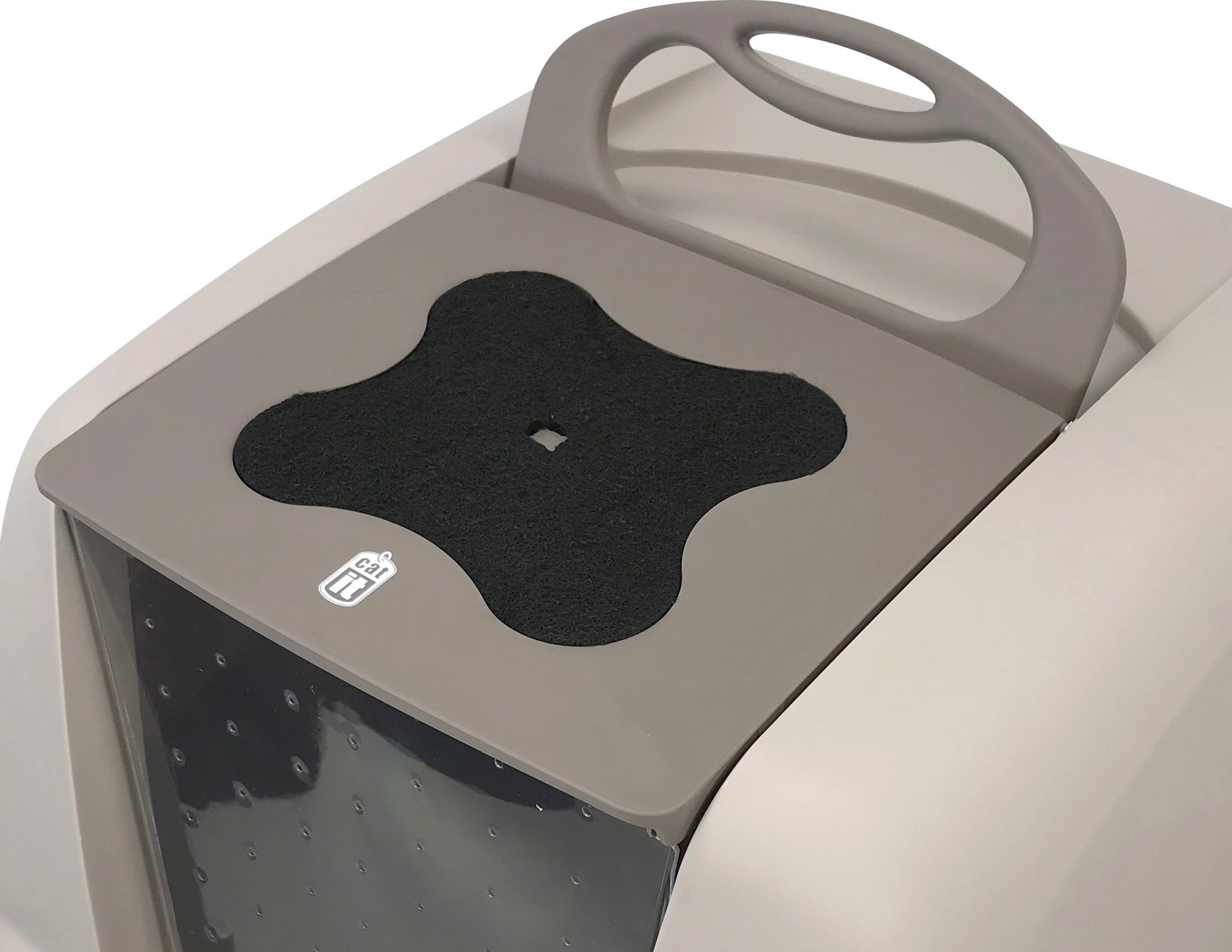 A Catit macskatoalett tetővel ideális nagytestű macskáknak vagy több macskás háztartásnak: az extra nagy bejárat megkönnyíti a nagymacskák számára a bejutást és a gazdik számára a takarítást. Az integrált szénszűrő csökkenti a szagokat, a ház pedig 100 százalékban BPA-mentes anyagokból készült, amely könnyen tisztítható.