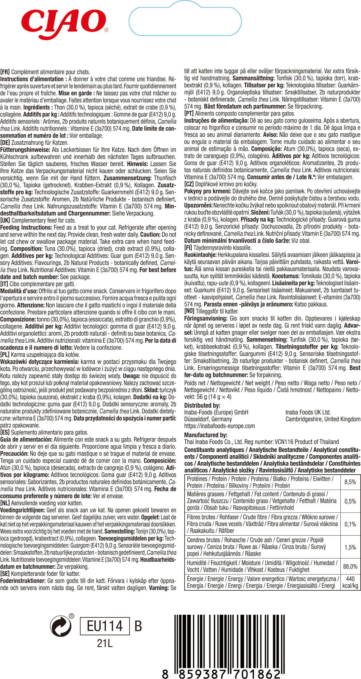 Ez az ellenállhatatlanul krémes snack még a legigényesebb macskák szívét is megdobogtatja. A gondosan válogatott összetevők és a fajnak megfelelő receptúra ​​igazán különleges csemegévé teszi, amellyel újra és újra kényeztetheti macskáját.