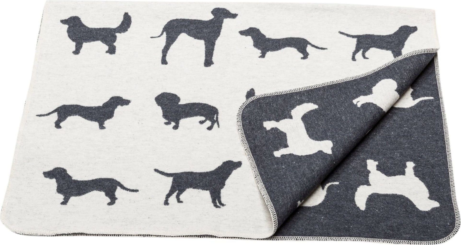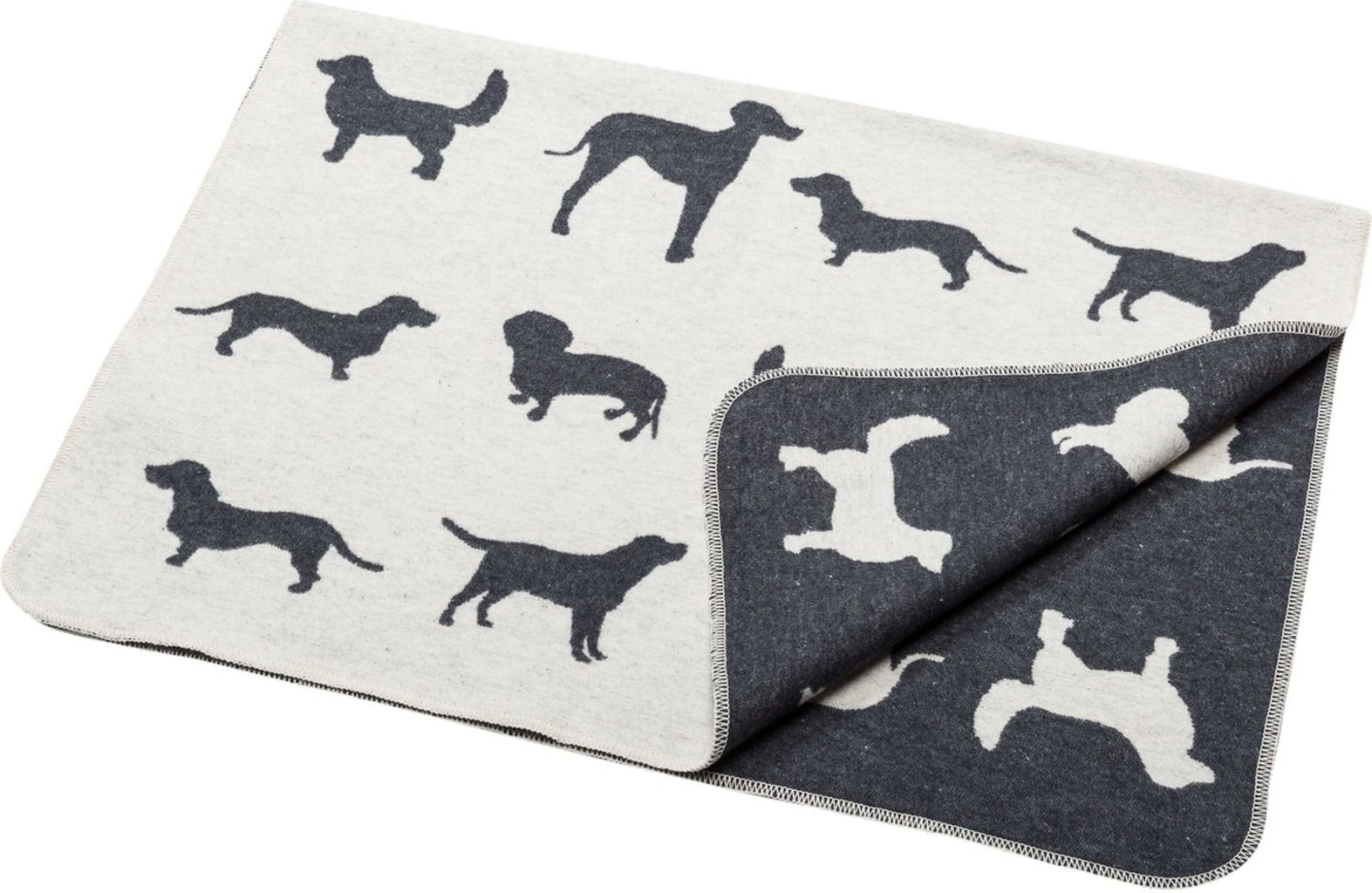 Ez a Jacquard-flaneltakaró csodálatosan puha tapintású és természetesen strapabíró is! A nyersfehér alapon fekete színnel felvázolt kutyák egy nagyszerűen összehangolt dizájn részét képezik. Egy ékszer minden négylábú számára és a nappaliba!