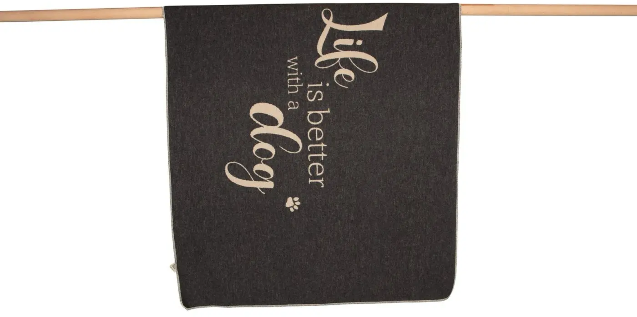 David Fussenegger "Life is better with a dog" háziállat takaró, nagy, anthrazit