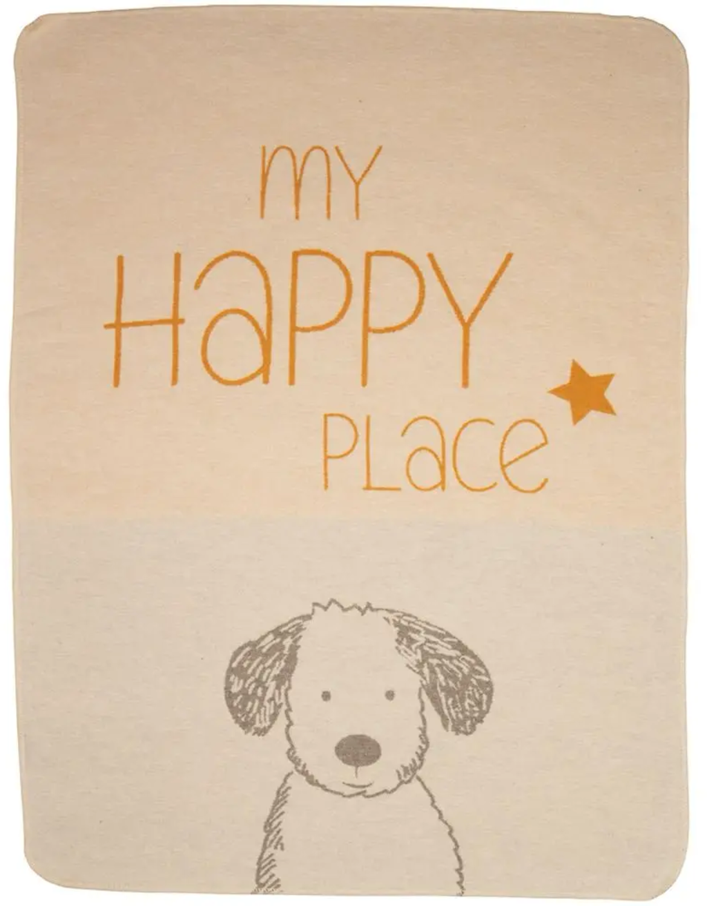 A my happy place kisállat pléd kutyák számára 85%-ban újrahasznosított pamutból készült. A kiváló minőségnek köszönhetően a pokróc gond nélkül mosható 40°C-on.