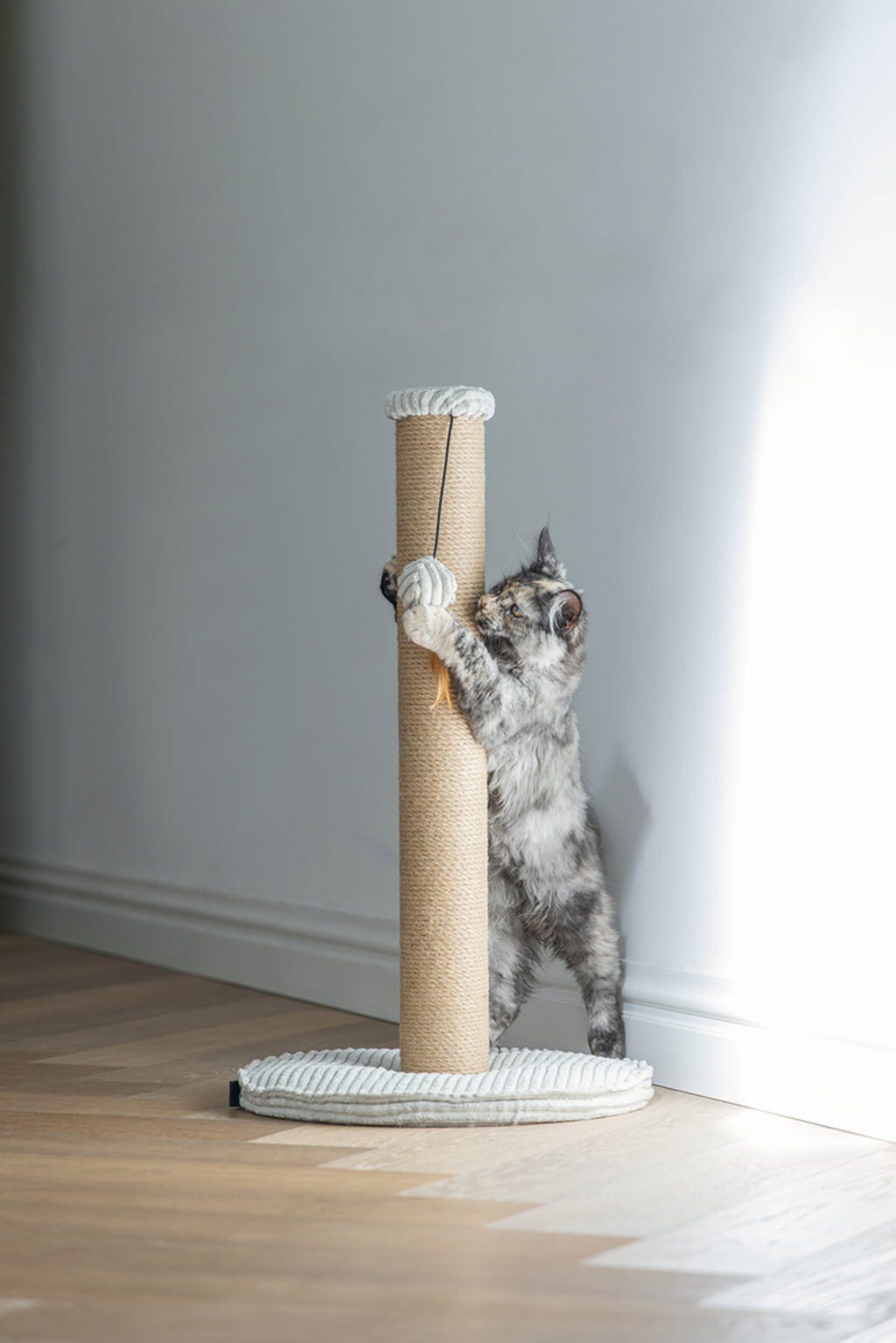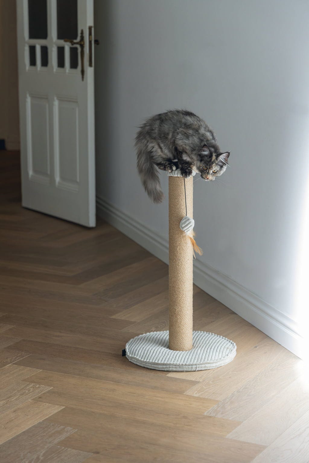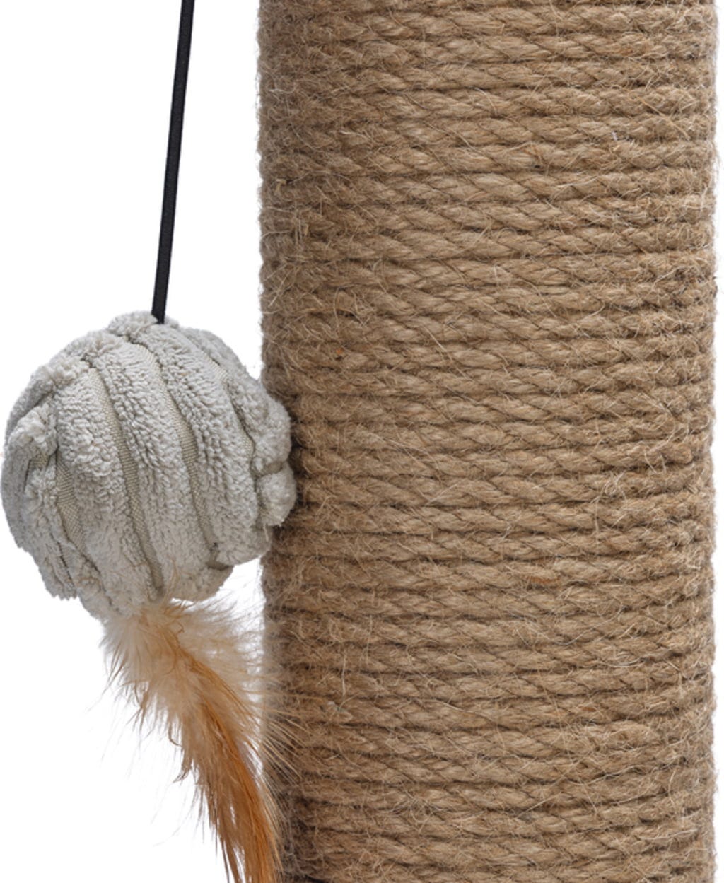 Ez az integrált macskajátékkal ellátott kaparóoszlop nemcsak órákig tartó szórakozást és fajnak megfelelő tevékenységet kínál macskájának, hanem igazán dekoratívan is néz ki. Mindkettejüknek örömet fog szerezni, és igazán gazdagítani fogja otthonát, ahol bútorait a jövőben megkímélheti az éles karmoktól.