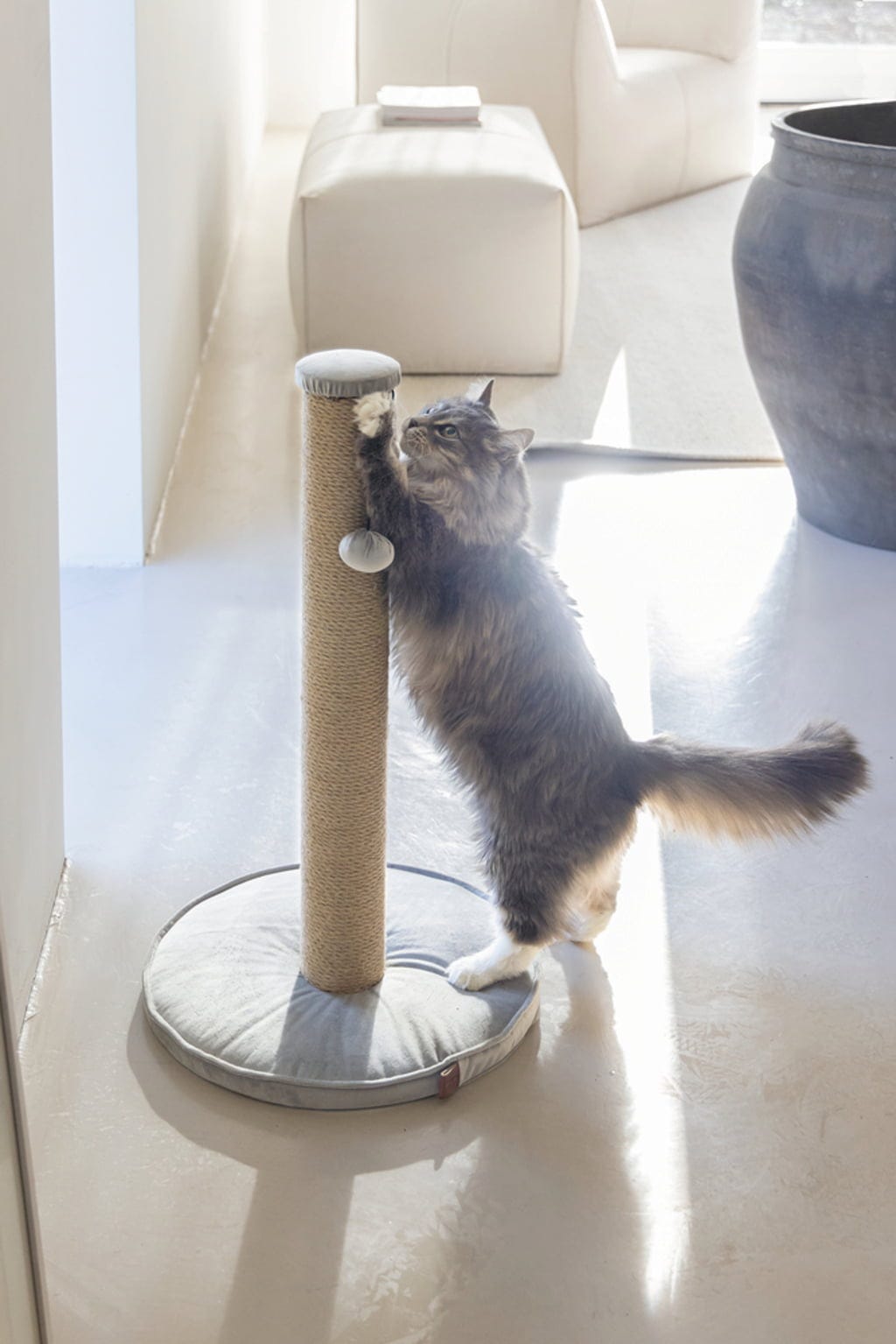 A bársony alaplemez és a jutakötéllel körbetekert kaparóoszlop minden cicagazdi háztartásának csodálatos kiegészítőjévé teszi ezt a kaparófát. Az integrált játéknak köszönhetően nemcsak órákig tartó szórakozást nyújt macskájának, hanem tökéletesen illik a legkülönbözőbb lakberendezési stílusokhoz is.