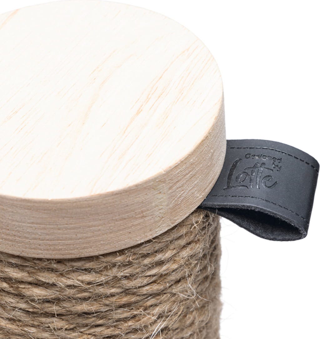 - Függőleges és vízszintes kaparási lehetőségek - jutakötéllel körbetekert törzs és szizálszőnyeggel borított alapzat