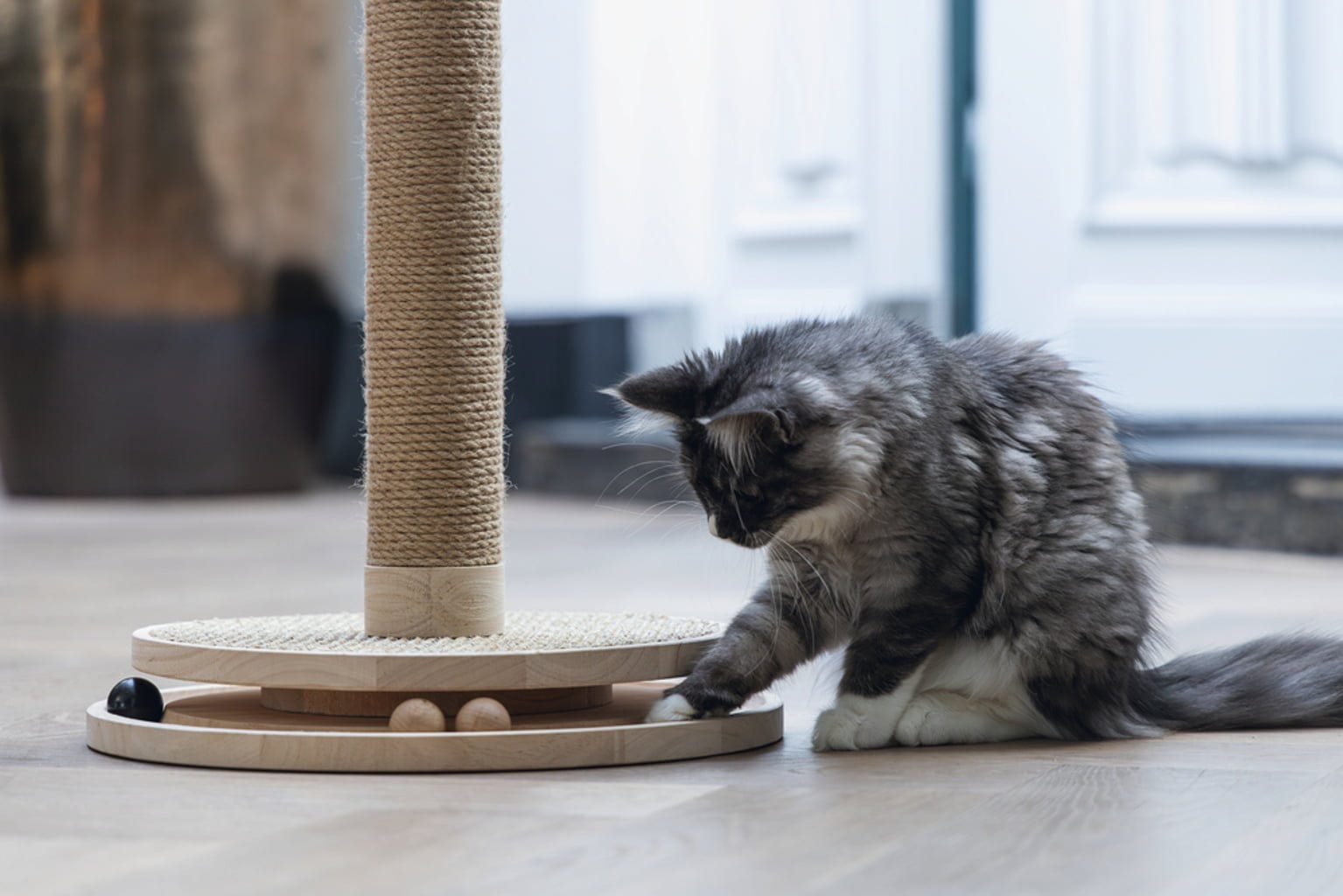 Ez a kaparóoszlop különösen sok örömet szerez a játékos cicáknak, mivel nemcsak arra invitálja őket, hogy alaposan megélezzék karmaikat, hanem integrált labdáival és tollas kötelével is rengeteg szórakozást nyújt. Az unalomnak esélye sincs, a bútorok pedig sértetlenek maradnak.