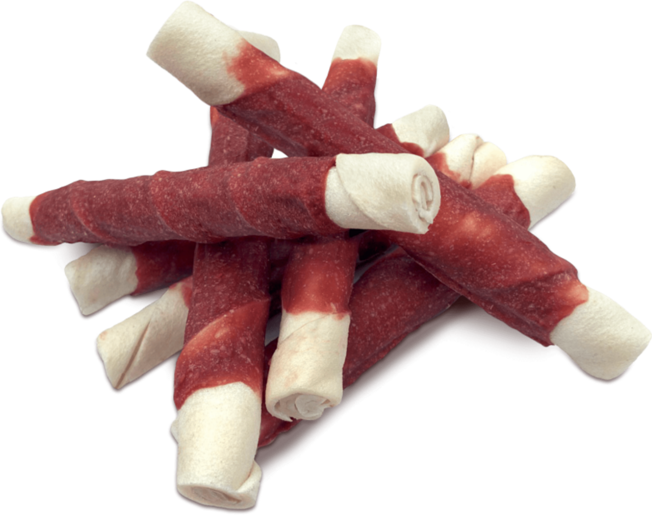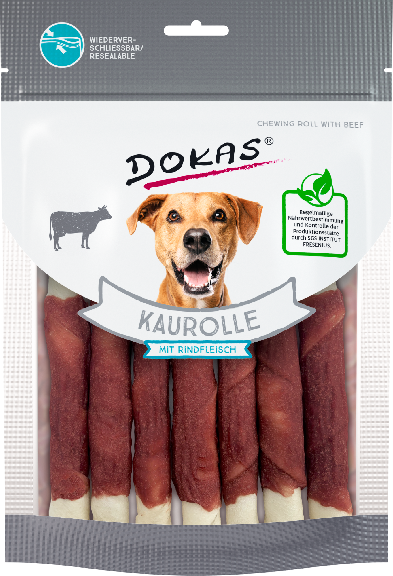A Dokas rágórudak ízletes marhabőrből készülnek, finom marhahússal bevonva, és ízvilágukkal minden téren meggyőzőek. Az intenzív rágás emellett erősíti az izomzatot, és hozzájárulhat a napi fogápoláshoz.