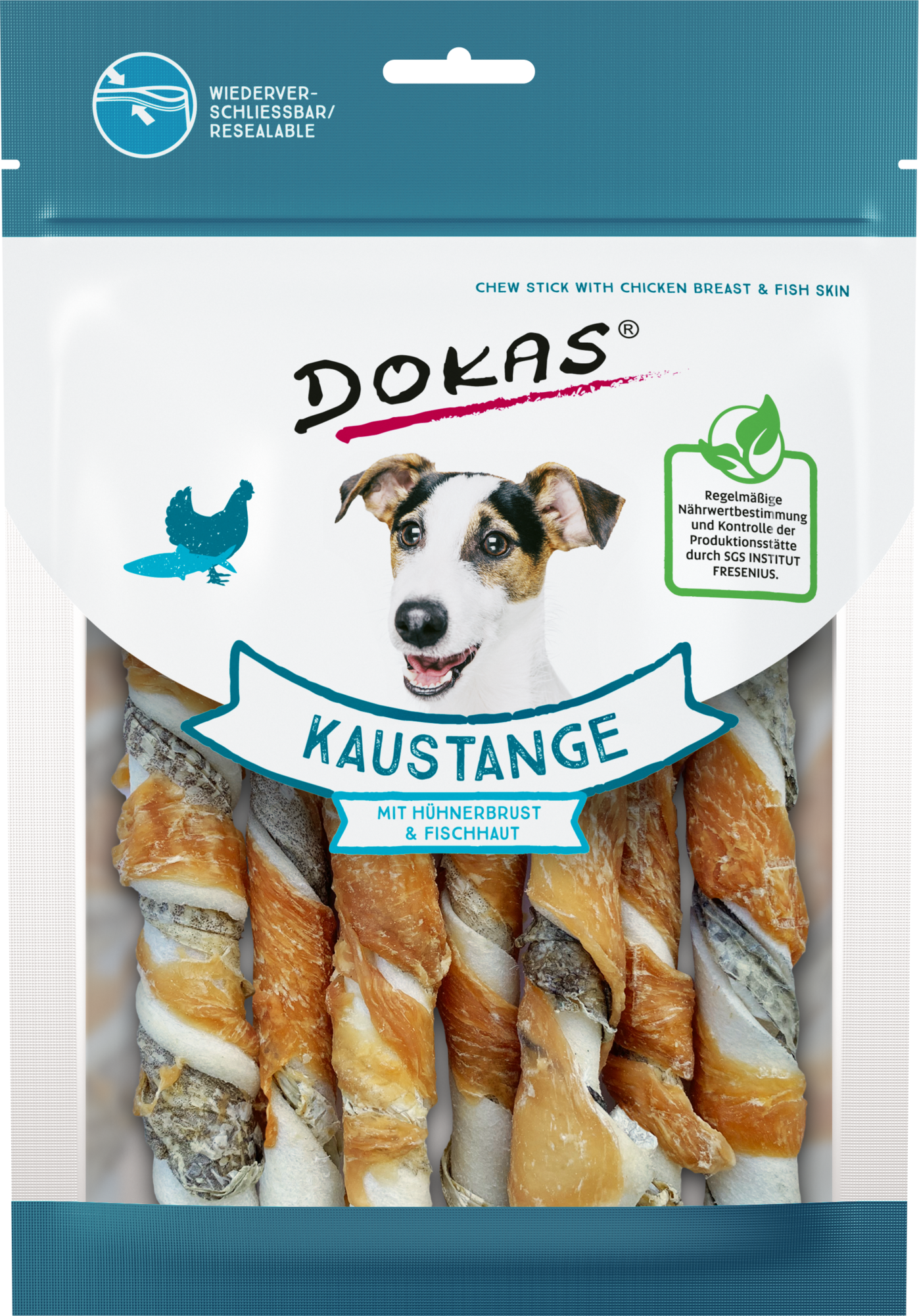 A finom csirkemellfilével és ízletes halbőrrel körbetekert marhabőr rudak különleges rágási élményt nyújtanak. Az intenzív rágás emellett erősíti az izomzatot, és segíthet a napi fogápolásban.
