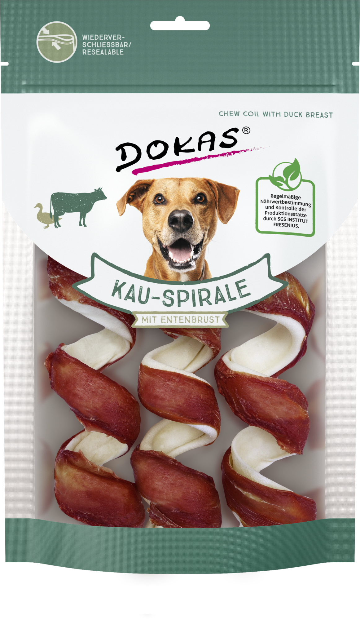 A Dokas rágóspirál kacsamellel ellenállhatatlan rágási élményt nyújt – legyen szó jutalmazásról vagy snackről. Az intenzív rágás emellett erősíti az izomzatot, és támogathatja a napi fogápolást.