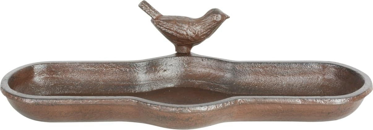 Ez a madárfürdő nemcsak kertje bájos kelléke, hanem megfelelő lehetőséget kínál a madaraknak szomjuk oltására vagy egy kis fürdőzésre. De a robusztus öntöttvasból készült tál etetőállomásként is használható. Egy madár már ott ült a szélén, aki várja a többieket.