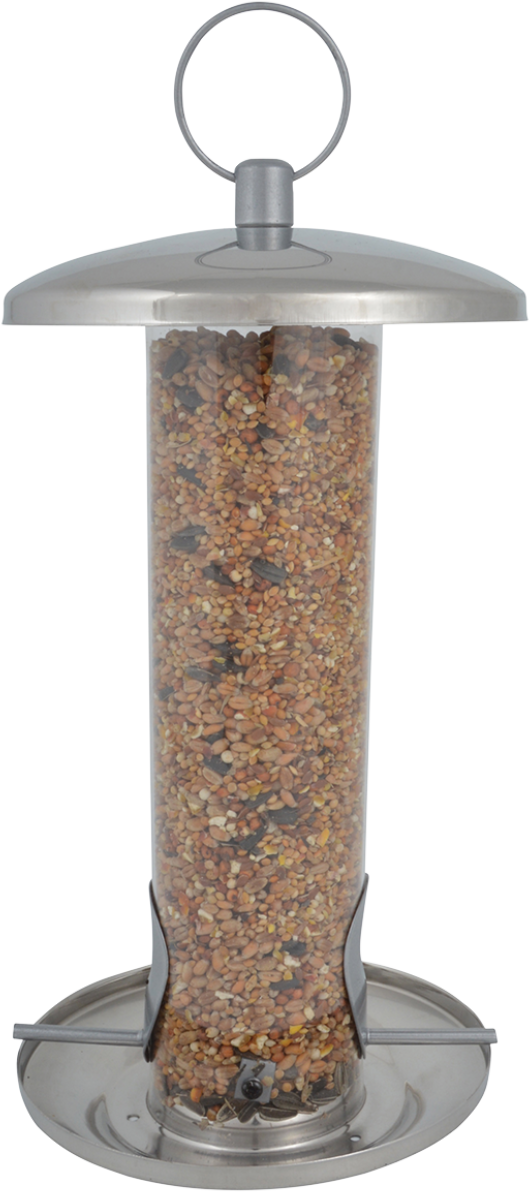 Ez a gyönyörű madáretető robusztus rozsdamentes acélból készült, és átlátszó etetőtartállyal rendelkezik, amely egy pillantással megmutatja az aktuális töltöttségi szintet. A két ülőrud segítségével a madarak nyugodtan leülhetnek és élvezhetik az ételt. Praktikus az időjárás hatásai ellen védő tető és az alján található széles gyűjtőedény is. A nagy gyűrűvel pedig könnyen felakasztható egy védett helyre.
