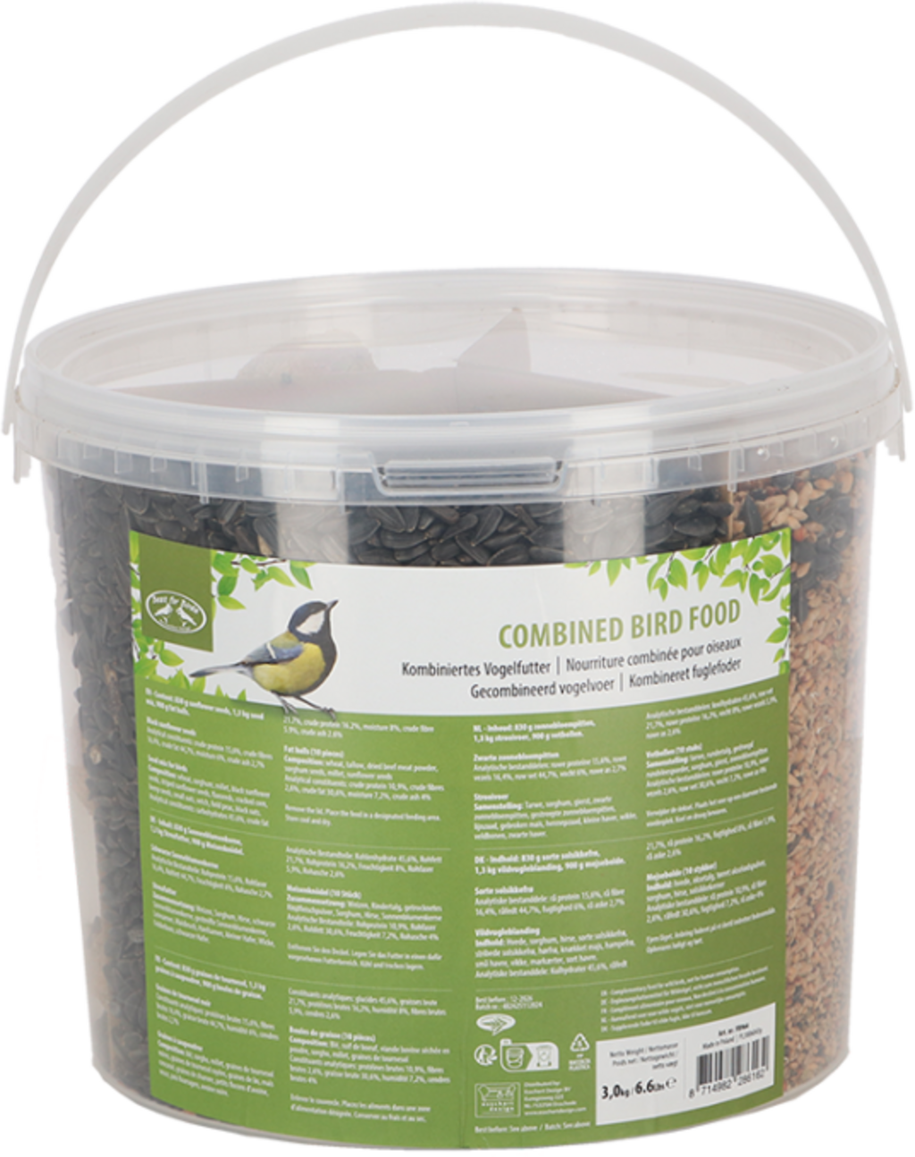 Ez a kiegyensúlyozott takarmánykeverék egész évben értékes energiával látja el a vadmadarakat. A laza takarmány és cinkegolyók keveréke zsírokban és tápanyagokban gazdag, valamint különösen a hidegebb hónapokban támogatja ezeket a tollas kertlakókat. Az újrazárható vödör megbízhatóan védi a takarmányt a rágcsálóktól, könnyen szállítható, és helytakarékosan egymásra rakható.