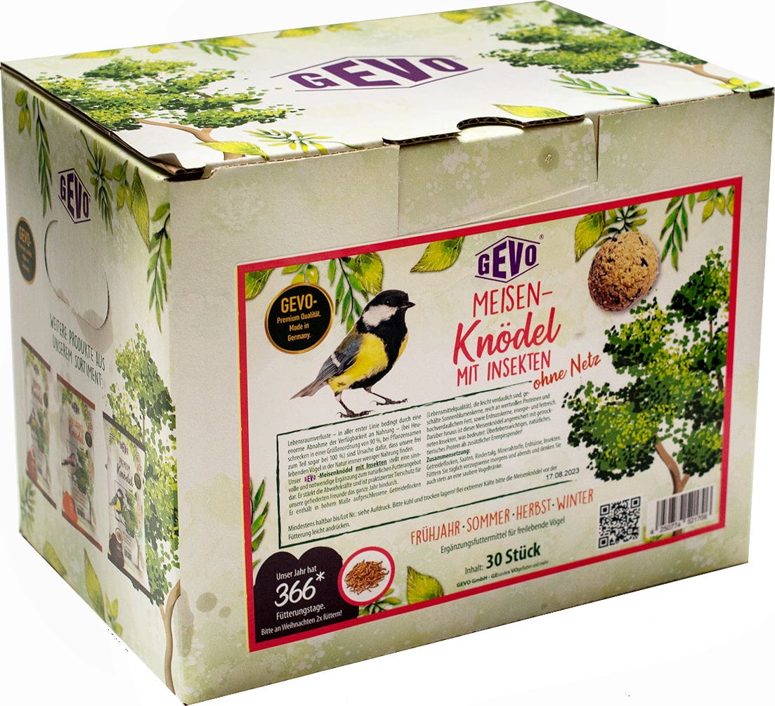 Ezek a kiváló minőségű, egész évben használható golyók alkalmasak az egész éves etetésre, és nemcsak télen jelentenek hasznos kiegészítést a vadon élő madarak természetes táplálékkínálatához. Segítik az értékes tápanyagokkal való ellátást, és így támogathatják a normál költési sikert is. A bennük található szárított rovarok extra állati fehérjével kiegészítő energiaforrásként szolgálnak.