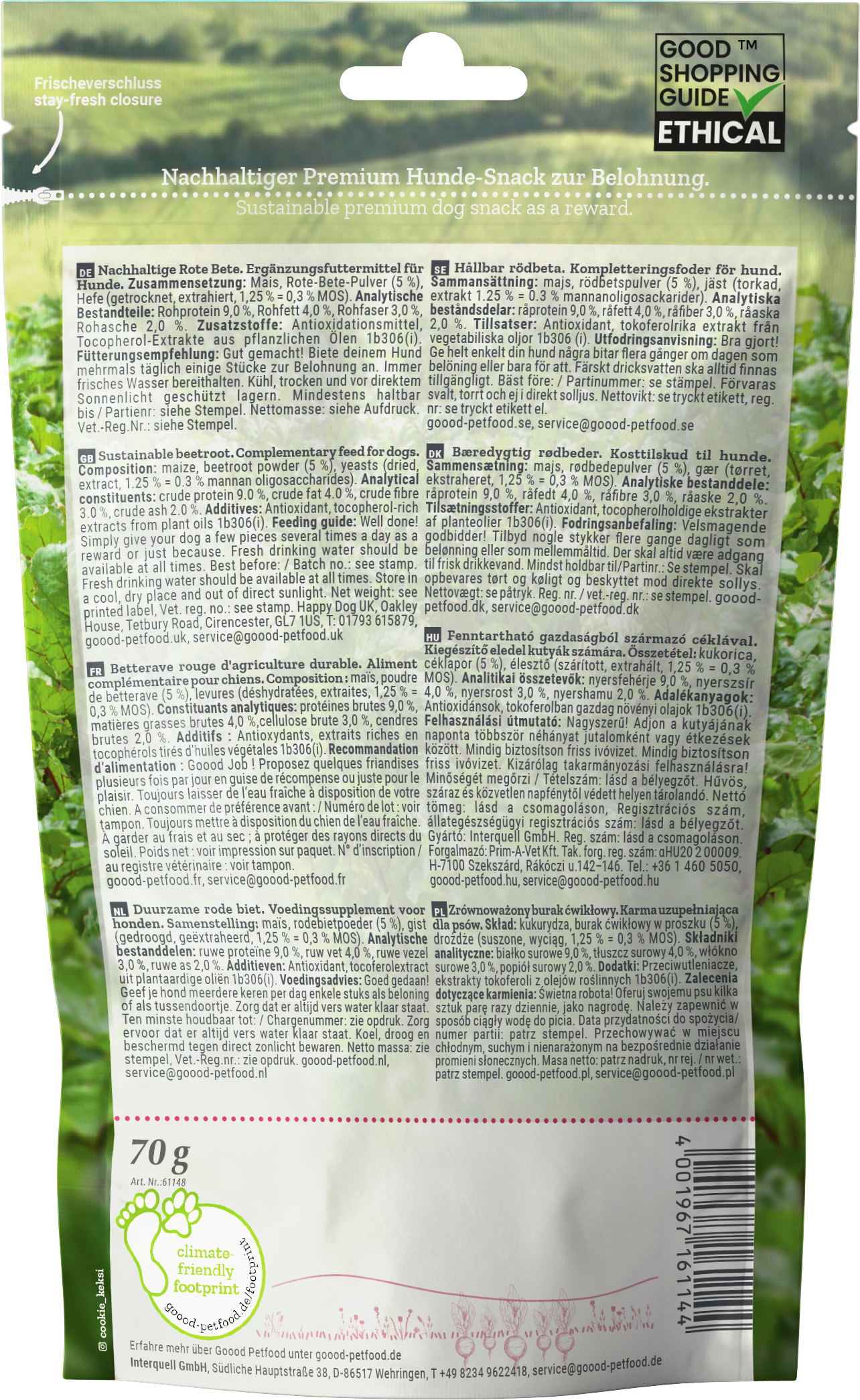 - 100% vegán receptúra kukoricával, céklával és élesztővel