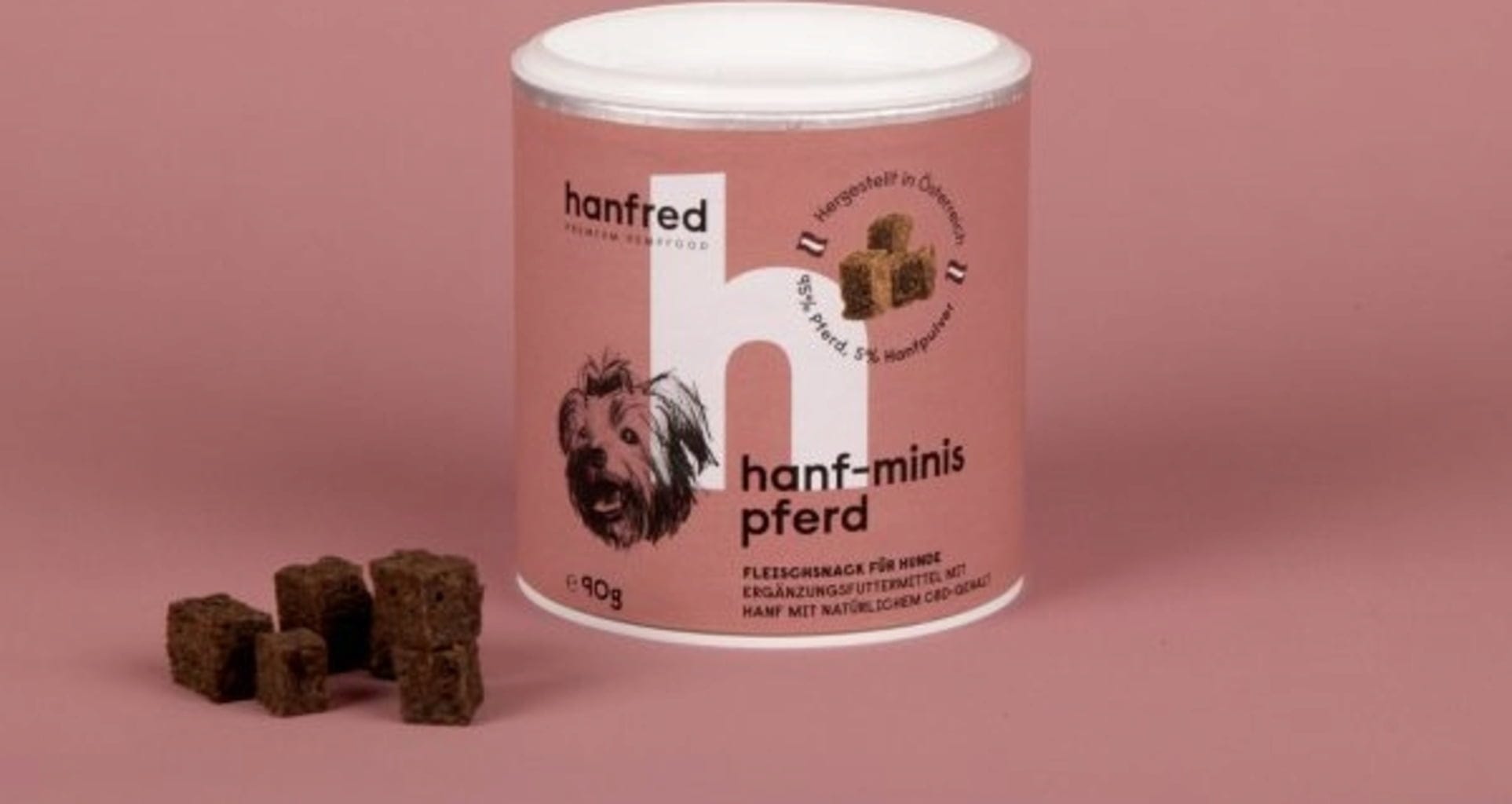 A kis kockák 95% szárított lóhúsból és 5% kenderporból állnak - a tudatos, fajnak megfelelő snack választás érdekében.