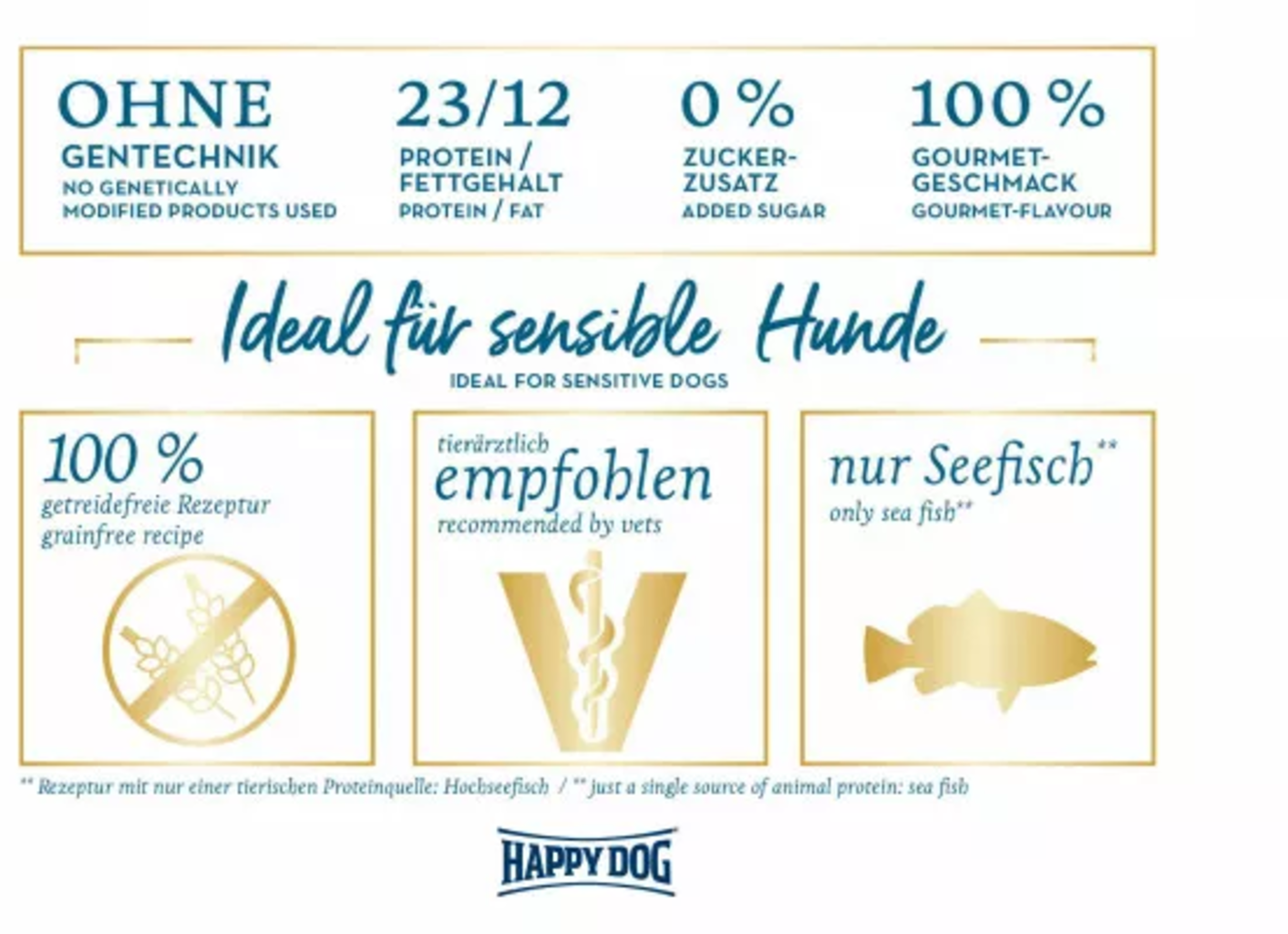 Az érzékeny gyomrú, étel-intoleranciával vagy emésztési problémákkal küzdő kutyák imádni fogják a Happy Dog Supreme Karib-szigetek száraztápot! A könnyed receptúra, amely omlós tengeri hallal és gluténmentes burgonyával készül, még a legválogatósabb négylábúakat is az etetőtálhoz csábítja. A tengeri hal az egyetlen állati fehérjeforrás az eledelben, valamint értékes omega-3 és omega-6 zsírsavakat biztosít.