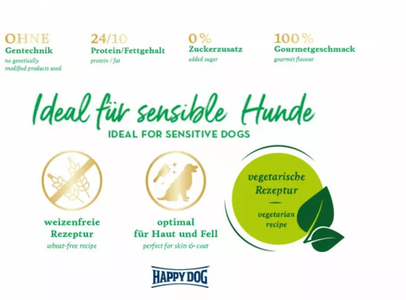 Mivel ez a finom csemege nem tartalmaz hozzáadott cukrot, szóját, géntechnológiát, mesterséges színezékeket, aromákat vagy tartósítószereket, tökéletes a kiegyensúlyozott étrendhez! A kíméletes elkészítés és az alacsony zsírtartalom (10%) alkalmassá teszi ezt a gluténmentes száraz eledelt érzékeny gyomrú és ételintoleranciában szenvedő kutyák számára.
