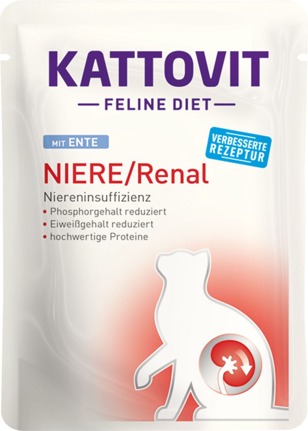 Ez a kiváló minőségű, ízletes kacsahúst tartalmazó diétás teljes értékű eledel megfelel a legújabb tudományos standardoknak, és kifejezetten krónikus veseelégtelenségben szenvedő macskák számára lett kifejlesztve. Az energiamennyiséghez viszonyított alacsony fehérjetartalmú összetételének köszönhetően hozzájárulhat macskája általános jó közérzetéhez.
