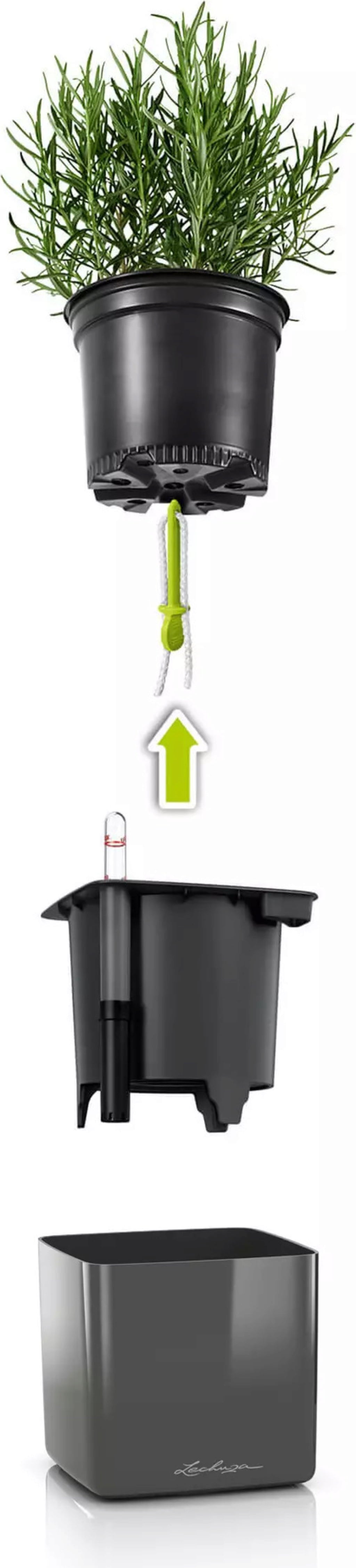 A Lechuza öntözőrendszere gondoskodik a növények ellátásáról, hogy azok gondozása ne vegyen igénybe túl sok időt. A növények könnyedén, a termesztőcseréppel együtt elhelyezhetők a Cube Premium kollekció növénytartóiban, anélkül, hogy időigényes átültetésre lenne szükség. A termesztőcserépbe alulról behelyezett pálca egyenletesen szállítja a nedvességet a gyökerekhez. A vízszintjelző segítségével ellenőrizhető, hogy mikor van itt az ideje az újbóli öntözésnek.