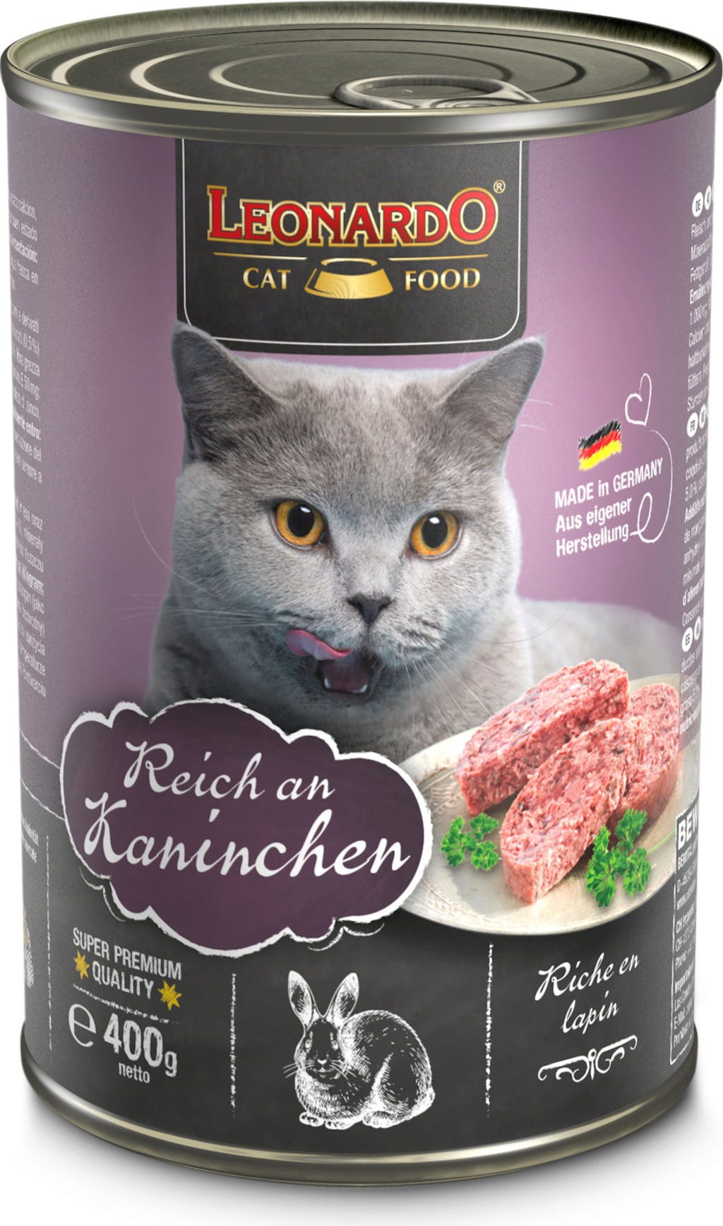 Ez a prémium minőségű nedvestáp finom nyúlhússal kényezteti az éhes macskaínyenceket. Kizárólag friss hús kerül az etetőtálba, hozzáadott gabona és cukor nélkül.
