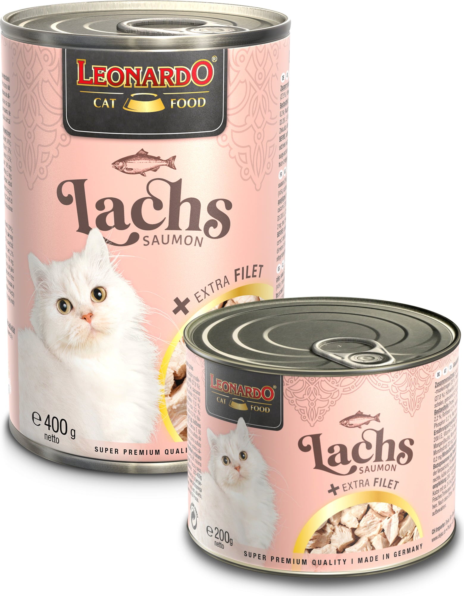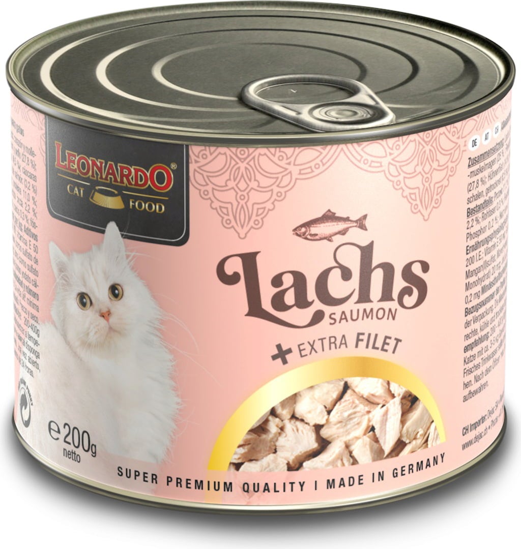 Macskaálom konzervben! Ez az ízletes fogás kényezteti az igényes macskákat extra finom lazaccal és csirkefilé darabokkal, melyeket saját levükben főznek. Értékes lazacolaj teszi teljessé ezt a finom receptet.