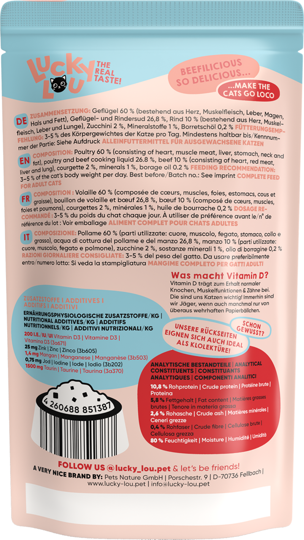 Vásárlói vélemény magyar nyelven: Lucky Lou Lifestage Pouch Adult macskatáp - Baromfi és marha