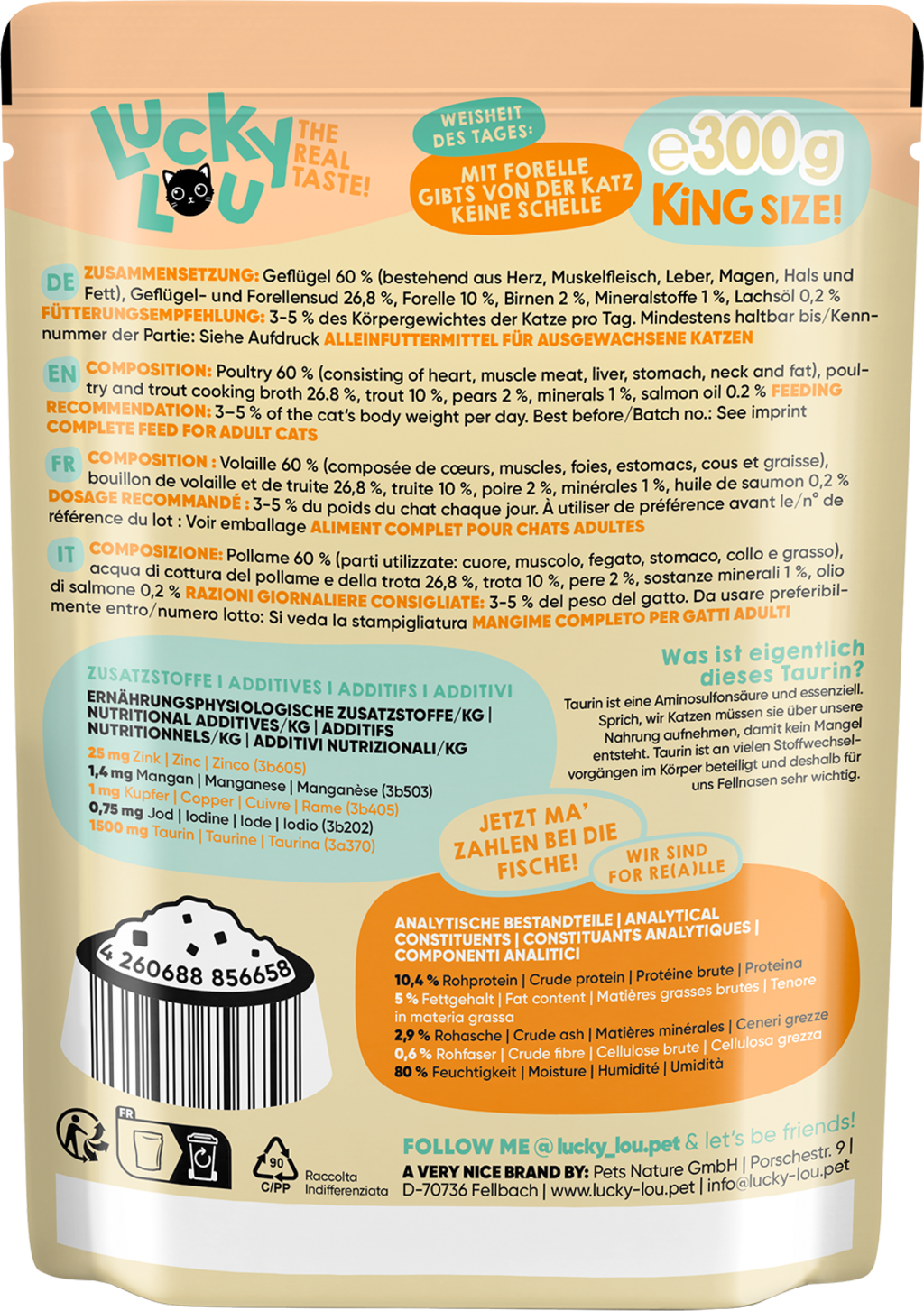 Vásárlói vélemény magyar nyelven: Lucky Lou Lifestage Pouch Adult macskatp - Baromfi és pisztráng