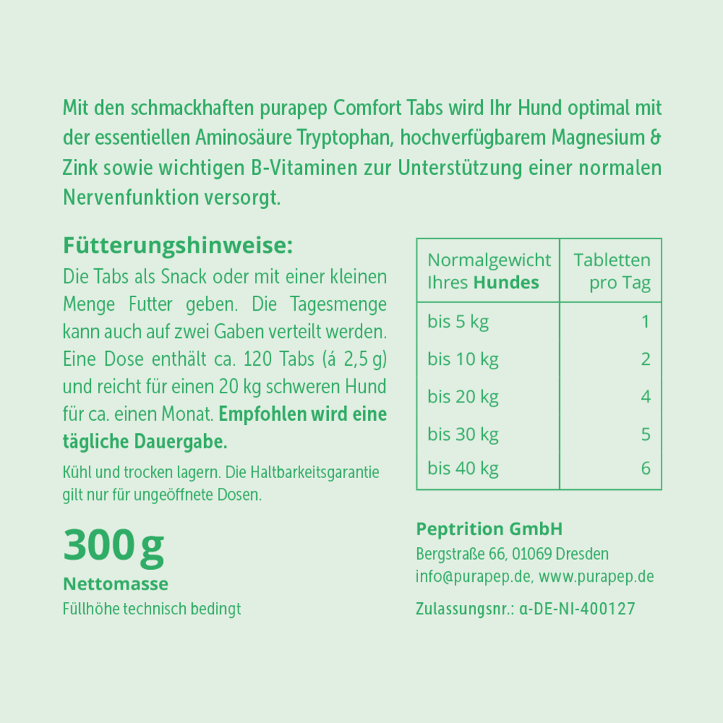 - A purapep Comfort tabletták baromfimájból (csirke és pulyka) származó tejsavófehérjét tartalmaznak. Ha kedvence allergiás ezekre az összetevőkre, a purapep Comfort tabletták nem adhatók neki.