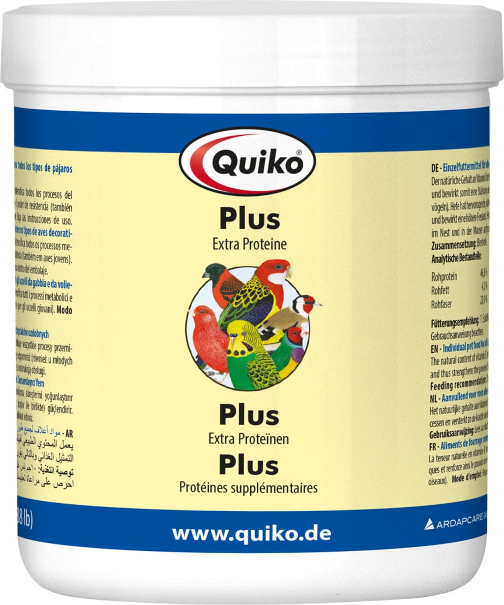 A Quiko Plus támogatja a normál fehérjeellátást, és különösen alkalmas fiatal madarak számára a fészek elhagyásától az elválasztáson át a vedlésig. Így még akkor is elegendő tápanyaghoz jutnak, ha keveset esznek.