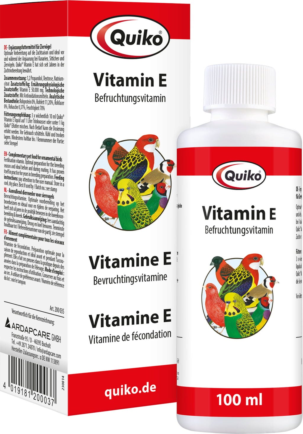 - Keverjen hetente 3-szor 10 ml Quiko Vitamin E liquid-et 1 kg Quiko tojásos eledelbe vagy 1 l ivóvízbe. Szükség esetén az adagolás növelhető.
