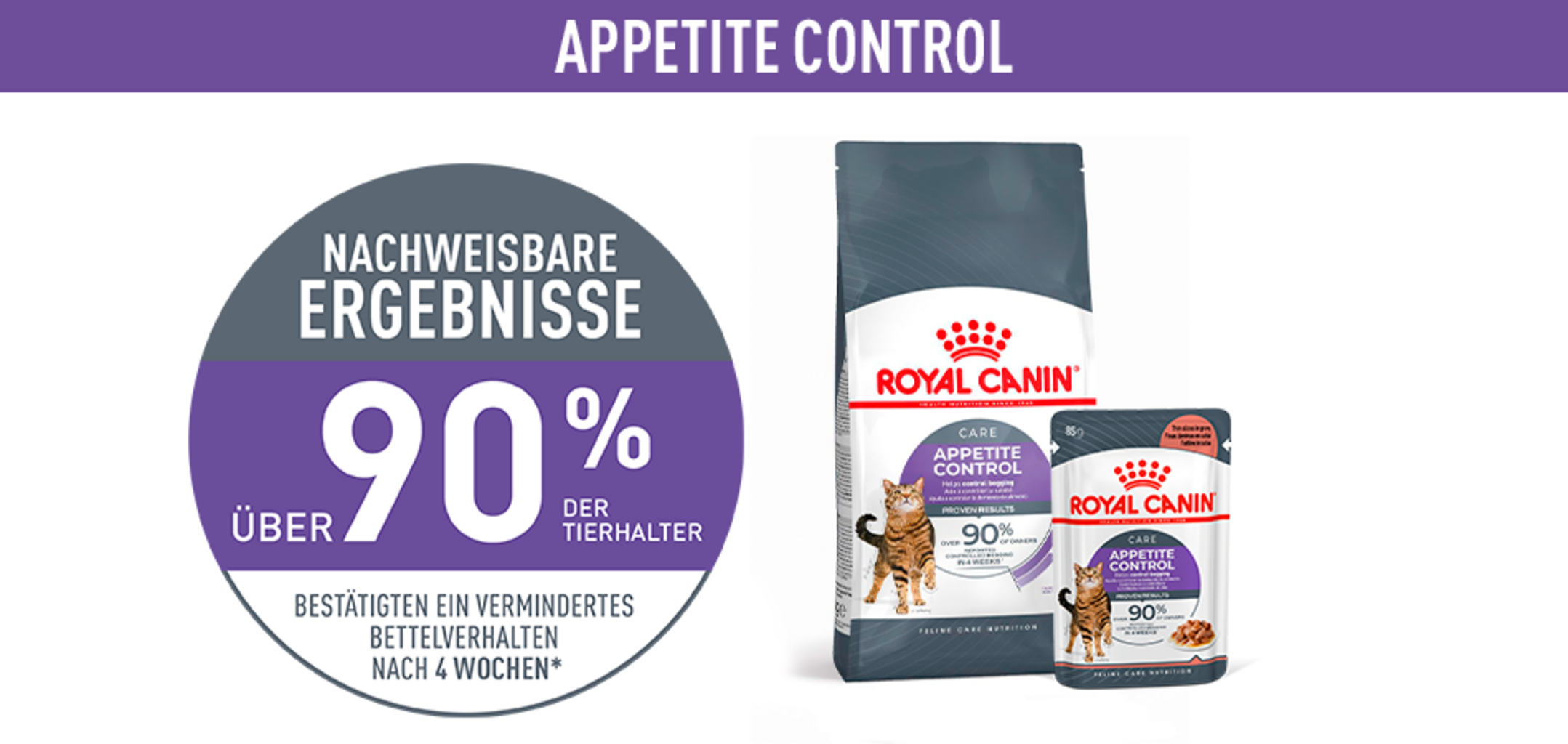 A ROYAL CANIN® Appetite Control Care bizonyítottan jó eredményeket ér el. A márka belső vizsgálata kimutatta, hogy a macskatulajdonosok több mint 90%-a számolt be arról, hogy macskája kéregető viselkedése már 4 hét etetés után csökkent.