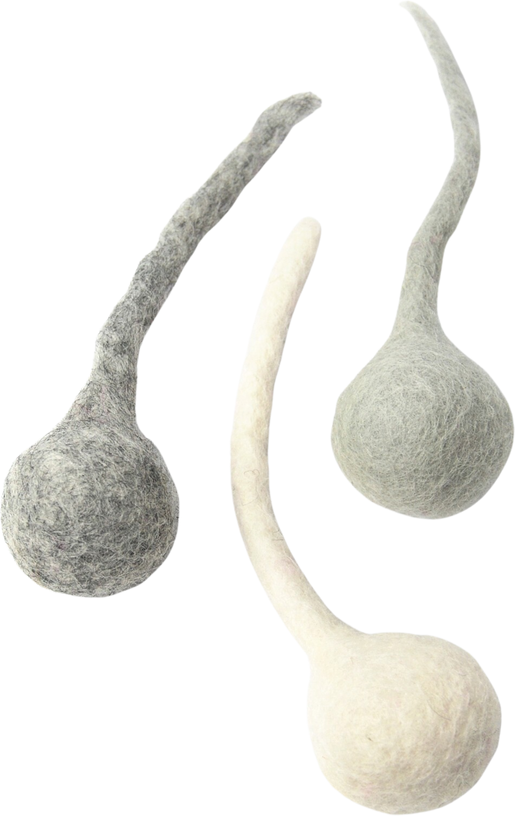 Ez a játék hatalmas örömet okoz macskájának, és interaktív szórakozást nyújt. Kiváló minőségű merinói gyapjúból készült, a megnyújtott formák izgalmas üldözési jelenetekre és rengeteg akcióra csábítanak. A bombák ideálisak a házban való rúgásra, vagy hogy a macskád apportírozza őket. Kihívást jelentenek macskájának, és garantáltan felébresztik a vadászösztönt. Minden darab kézzel készül Németországban, így valóban egyedi. Tisztításukhoz egyszerűen mossa ki őket egy hálós mosózsákban a mosógép gyapjúprogramjában 30°C-on.