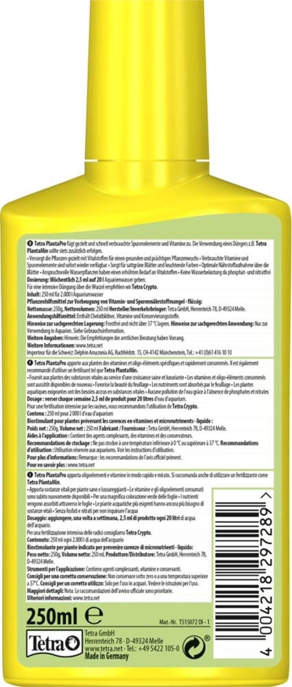A Tetra PlantaPro egy lombtrágya, amely gyorsan és célzottan biztosítja a felhasznált nyomelemeket az édesvízi akváriumokban. Különféle kiszerelésben kapható.