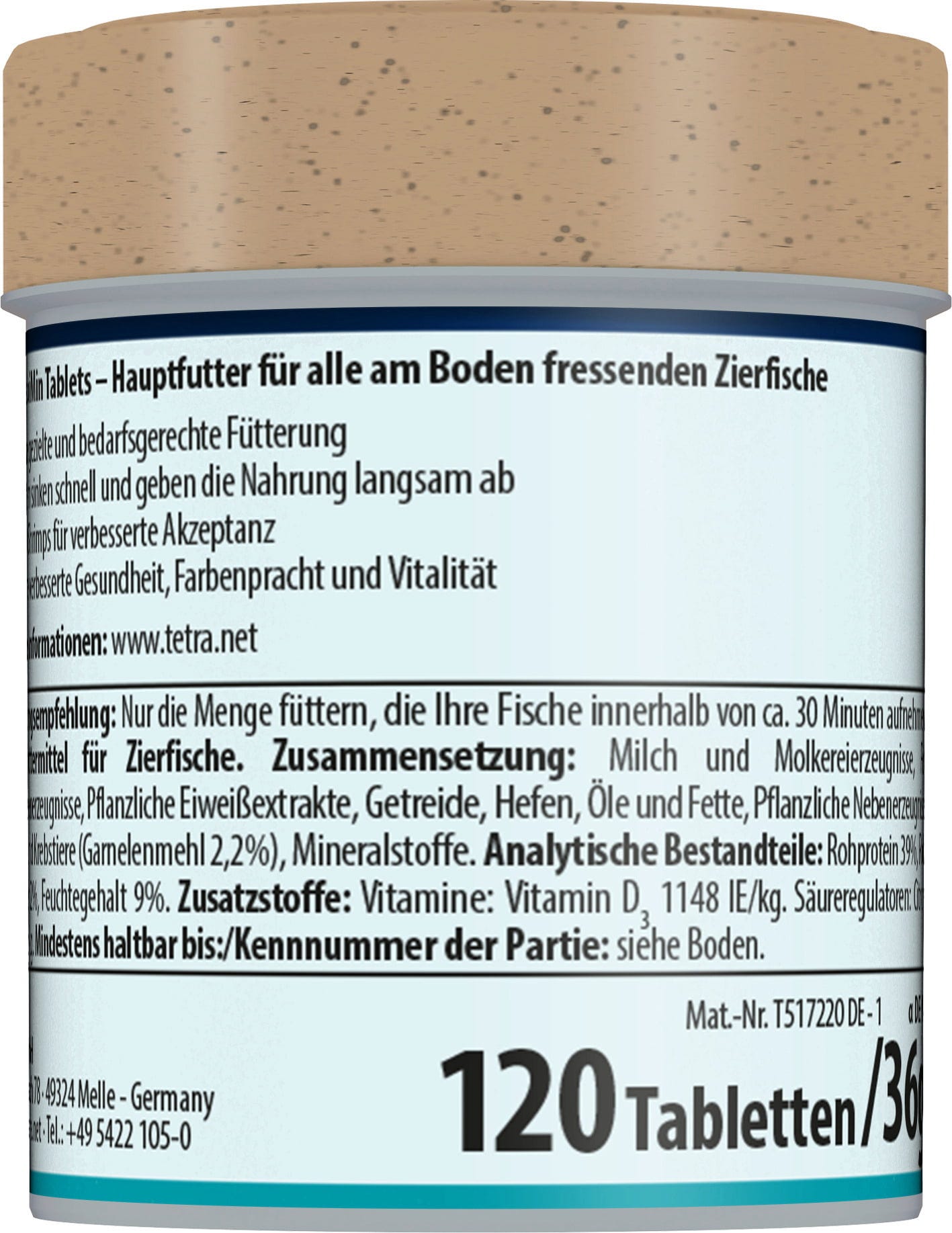 A Tetra TabiMin egy prémium minőségű, biológiailag kiegyensúlyozott, tápanyagban gazdag táptabletta minden fenéken táplálkozó hal számára. A tabletták gyorsan elsüllyednek, könnyen elhelyezhetők rejtett helyeken a félénk halak számára, illetva lassan oldódnak fel a könnyű etetés érdekében, anélkül, hogy a vizet zavarossá tennék. Az új, multi tabletta-formula garnélarákot tartalmaz a jobb befogadás érdekében, valamint minden alapvető tápanyagot, vitamint és ásványi anyagot. A sok természetes ásványi anyagot és karotinoidot tartalmazó hínár hozzájárul a színek természetes fokozásához. A Tetra táp könnyen emészthető, így a víz kevésbé szennyezett és tiszta marad.