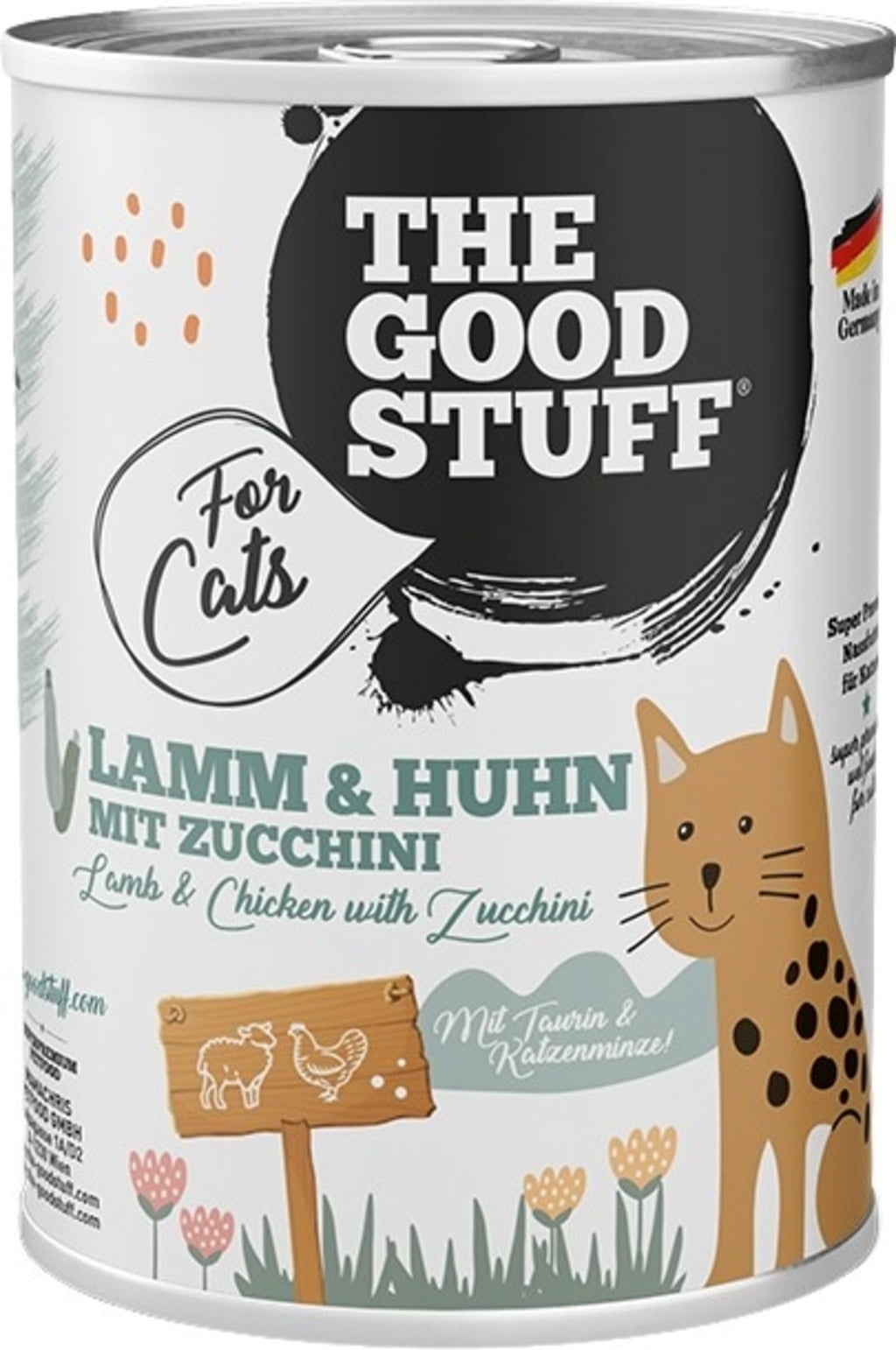 A The Goodstuff bárány- és csirkehús cukkinivel egy különösen ízletes és könnyen emészthető, magas hústartalmú receptet kínál macskájának. A friss bárány- és csirkehús kombinációja értékes fehérjét biztosít, míg a cukkini és a macskamenta ízletes kiegészítője az ízeknek.