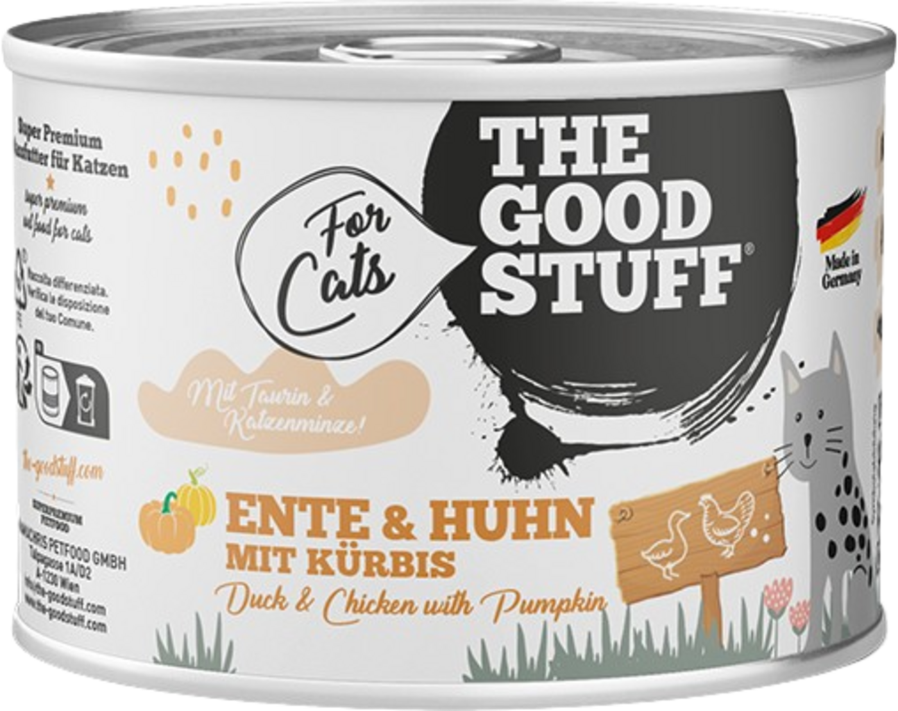 A The Goodstuff kacsa és csirke sütötökkel eledelével fehérjében gazdag, kiegyensúlyozott és ízletes eledelt kínálhat macskájának. 66% húst - friss kacsát és csirkét - tartalmaz valamint kíméletesen főtt zöldségeket, például sütőtököt és egy csipetnyi macskamentát.